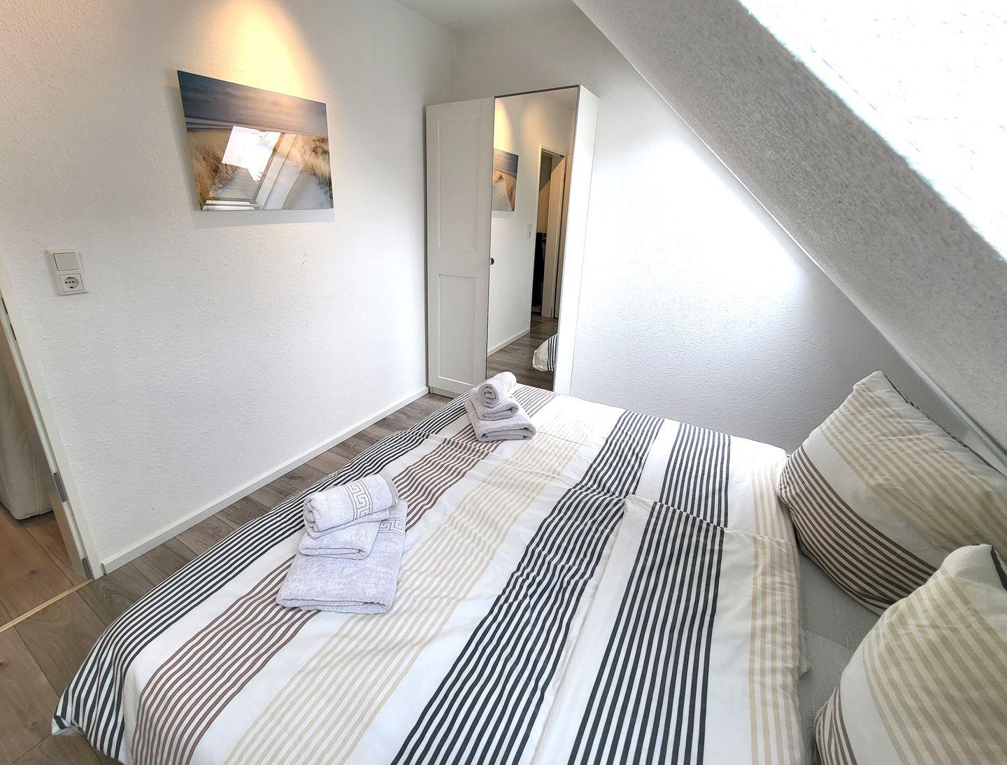 Diese Obergeschoß Ferienwohnung verfügt über eine voll ausgestattete Küchenzeile mit einer Mikrowelle, ein Kühlschrank, ein Backofen/Ceranfeld, ein Wasserkocher und eine Kaffeemaschine, ein Wohnzimmer mit einem Sofa mit Schlaffunktion (Ideal für eine 3te Person) und einen Flachbild-TV und ein wunderschönes eigenes Bad. Diese geschmackvolle Eingerichtete Unterkunft verfügt über einen Balkon mit Gartenmöbel und einen Gemeinschaftsraum für Fahrräder. Genießen Sie Ihr Frühstück an der frischen Seeluft.