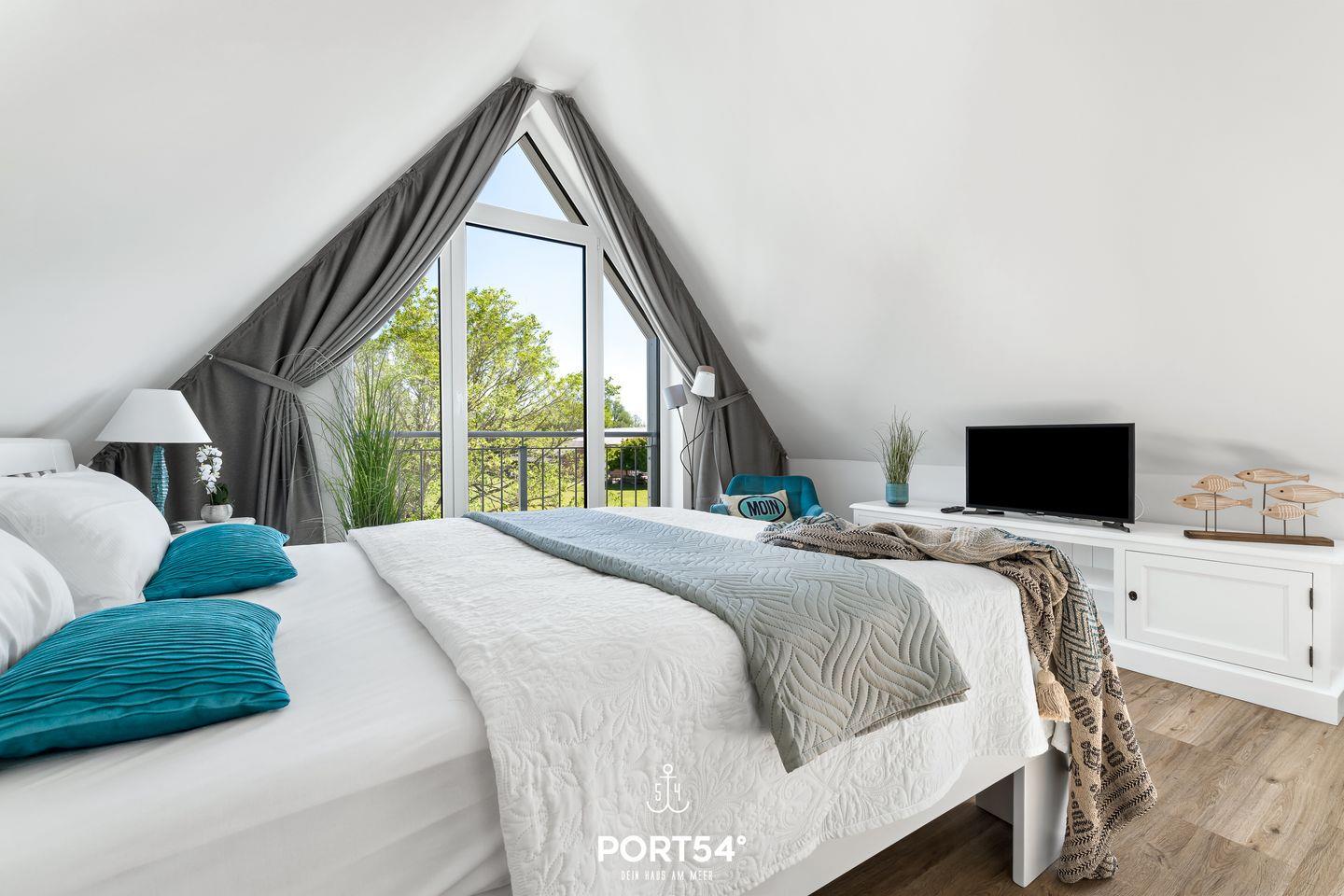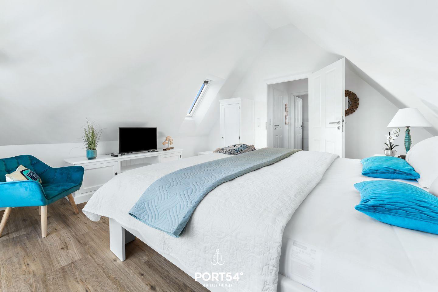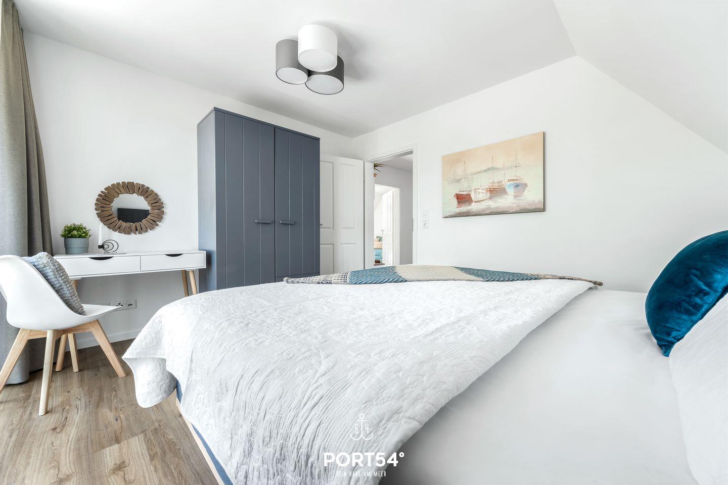 Beide Schlafzimmer verfügen über ein Doppelbett (180x200 cm), sowie Verdunkelungsmöglichkeiten, eins mit einem zusätzlich Smart-TV.