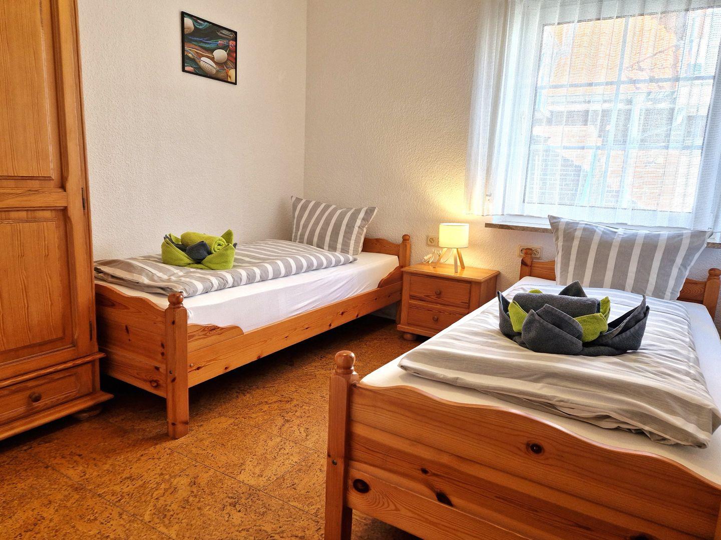 Weiter befinden sich in der Wohnung 2 Schlafzimmer, eins mit einem Doppelbett und ein weiteres mit 2 Einzelbetten.