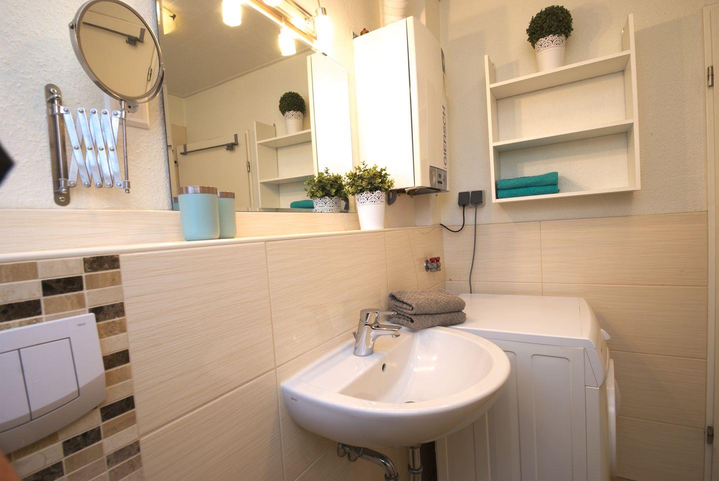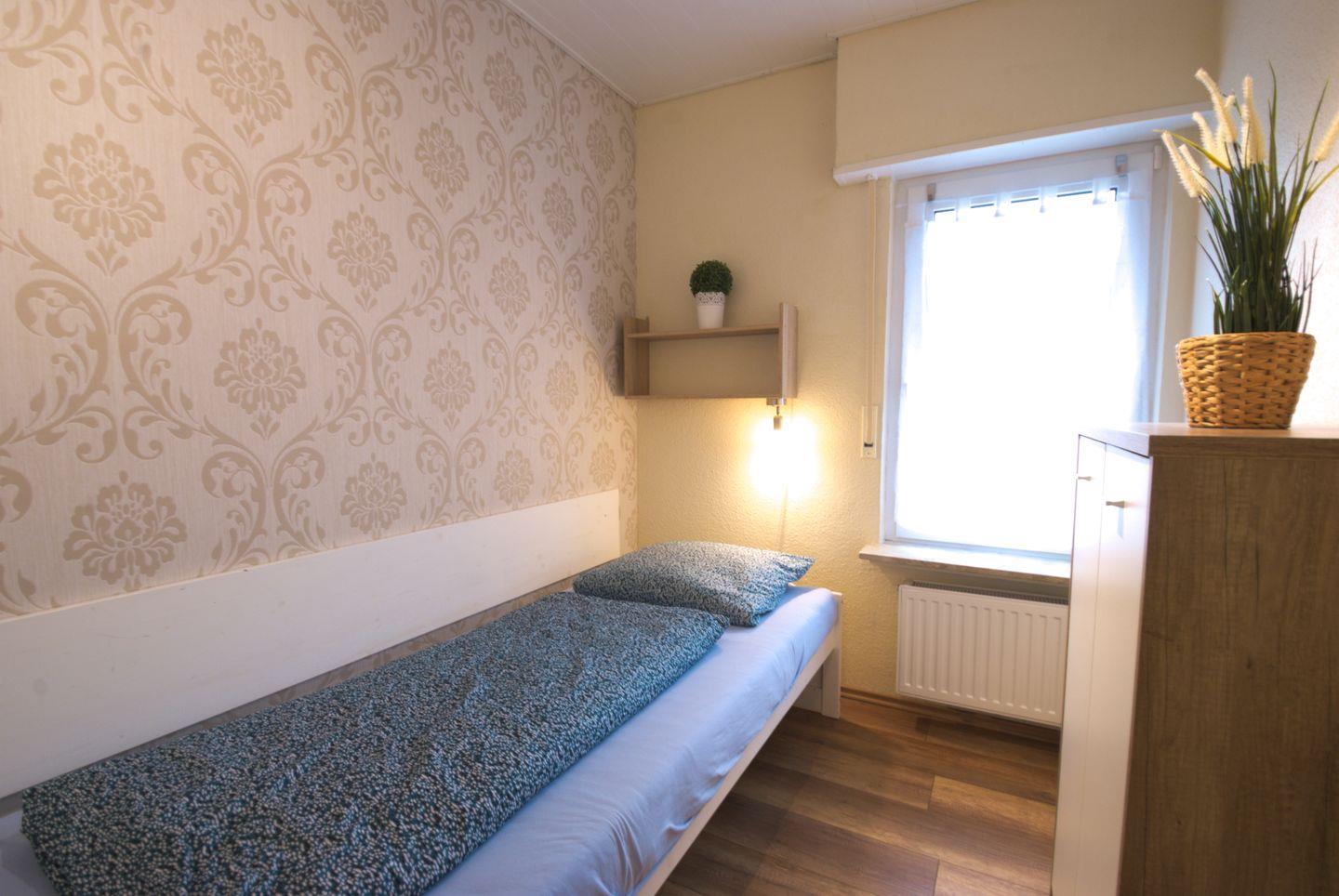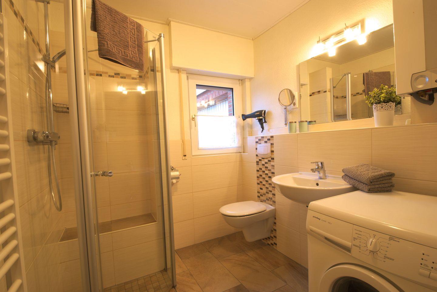 Das Wohnzimmer ist groß, hell und verfügt über einen großen TV. Auch ein Schlafzimmer ist mit TV ausgestattet. Die überdachte und windgeschützte-Terrasse kann über die Küche und die Stube betreten werden. Im Bad gibt es ein Fenster und eine Waschmaschine. In der Dusche ist eine geflieste Sitzbank. Im Haus ist ein zweites WC. Die 2 PKW-Einstellplätze sind direkt am Haus sowie die Garage.