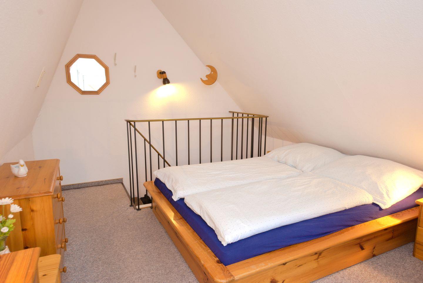 und Toilette mit Waschbecken, im 1. Stock ein weiteres Schlafzimmer mit Futon-Einzelbett und das 3. mit Doppelbett von 1,80 m auch im 1. Stock. Das gemütliche Wohnzimmer mit Sat-TV lädt zum Entspannen ein, während die gut ausgestattete Küche mit Spülmaschine und Mikrowelle alles für die Selbstversorgung bietet.