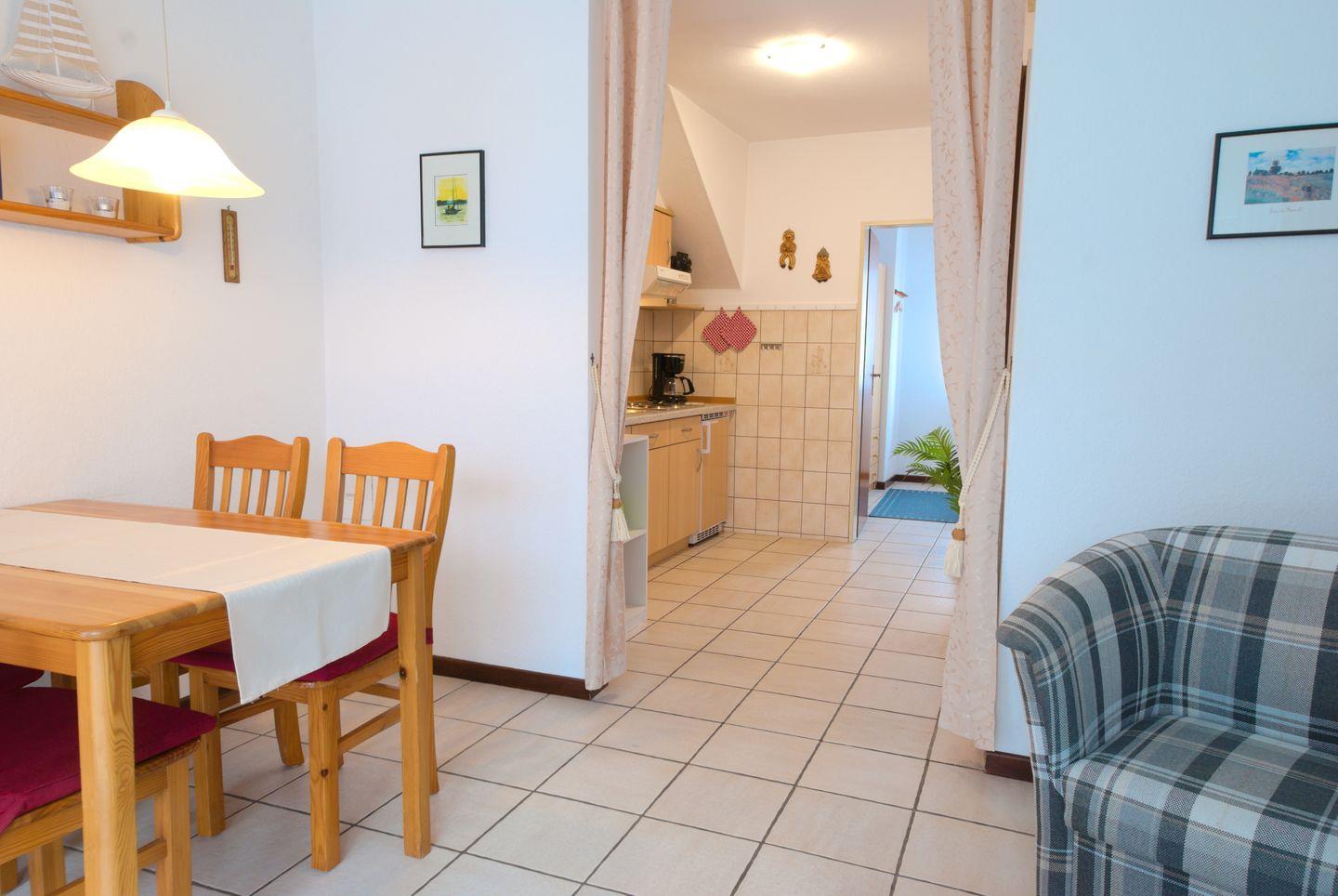 Die strandnahe Wohnung bietet Platz für bis zu 3 Personen und verfügt über ein Schlafzimmer mit Doppelbett sowie ein ausklappbares Schlafsofa im Wohnzimmer. Eine Küchenzeile mit 4 Plattenherd, Mikrowelle, Kaffeemaschine und Kühlschrank mit Gefrierfach ermöglicht eine bequeme Selbstversorgung. Das Badezimmer ist mit Dusche, WC und Waschbecken ausgestattet. Auf der Terrasse mit Gartenmöbeln können Sie entspannen. Ein PKW-Einstellplatz sowie ein Schuppen für Fahrräder stehen zur Verfügung. Hunde sind willkommen.