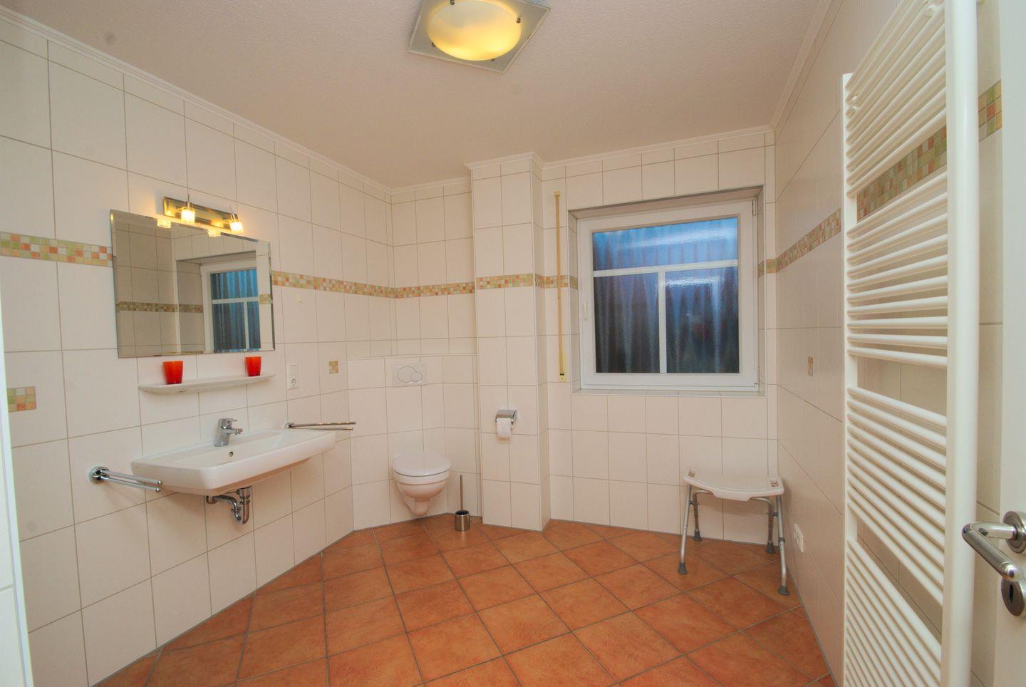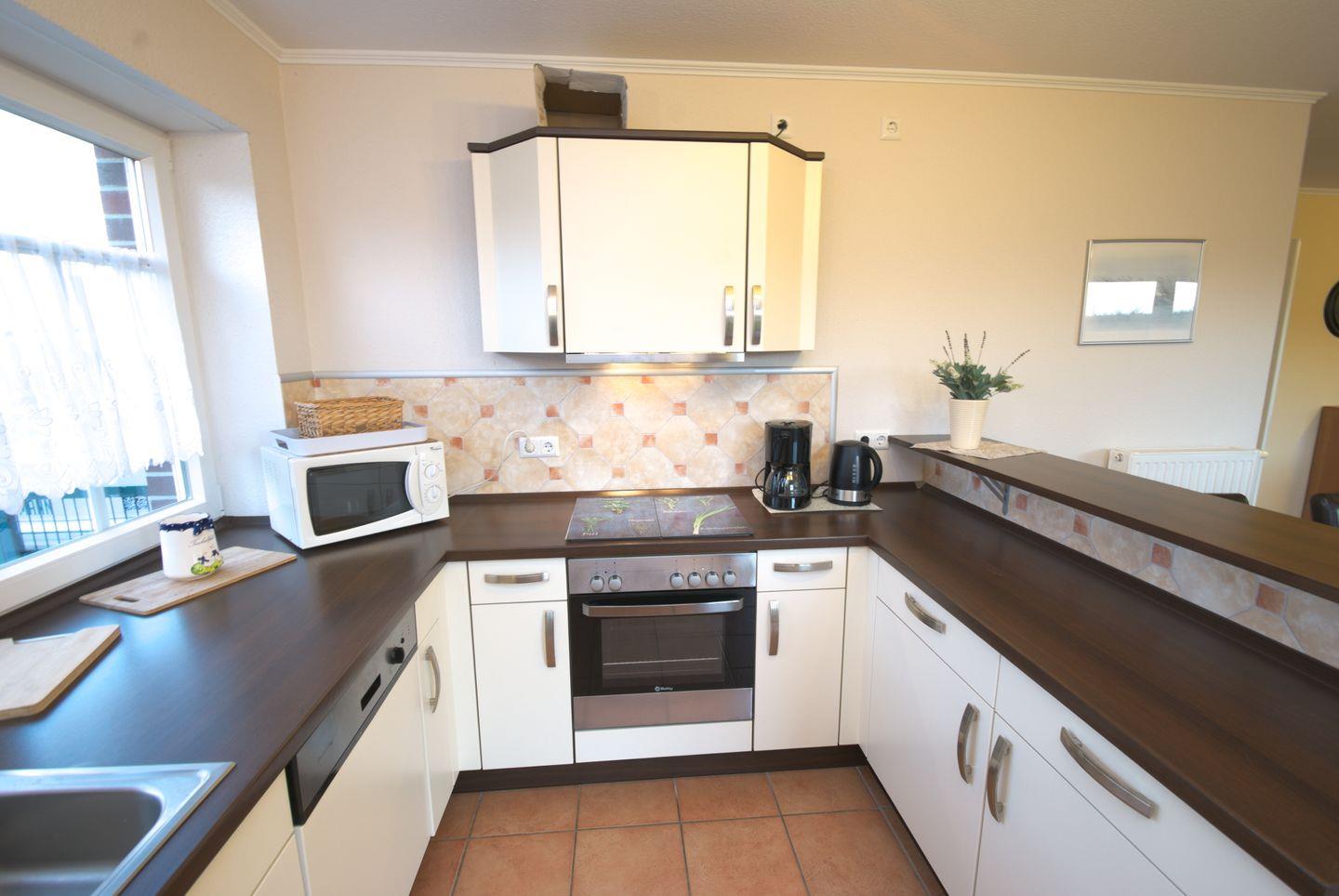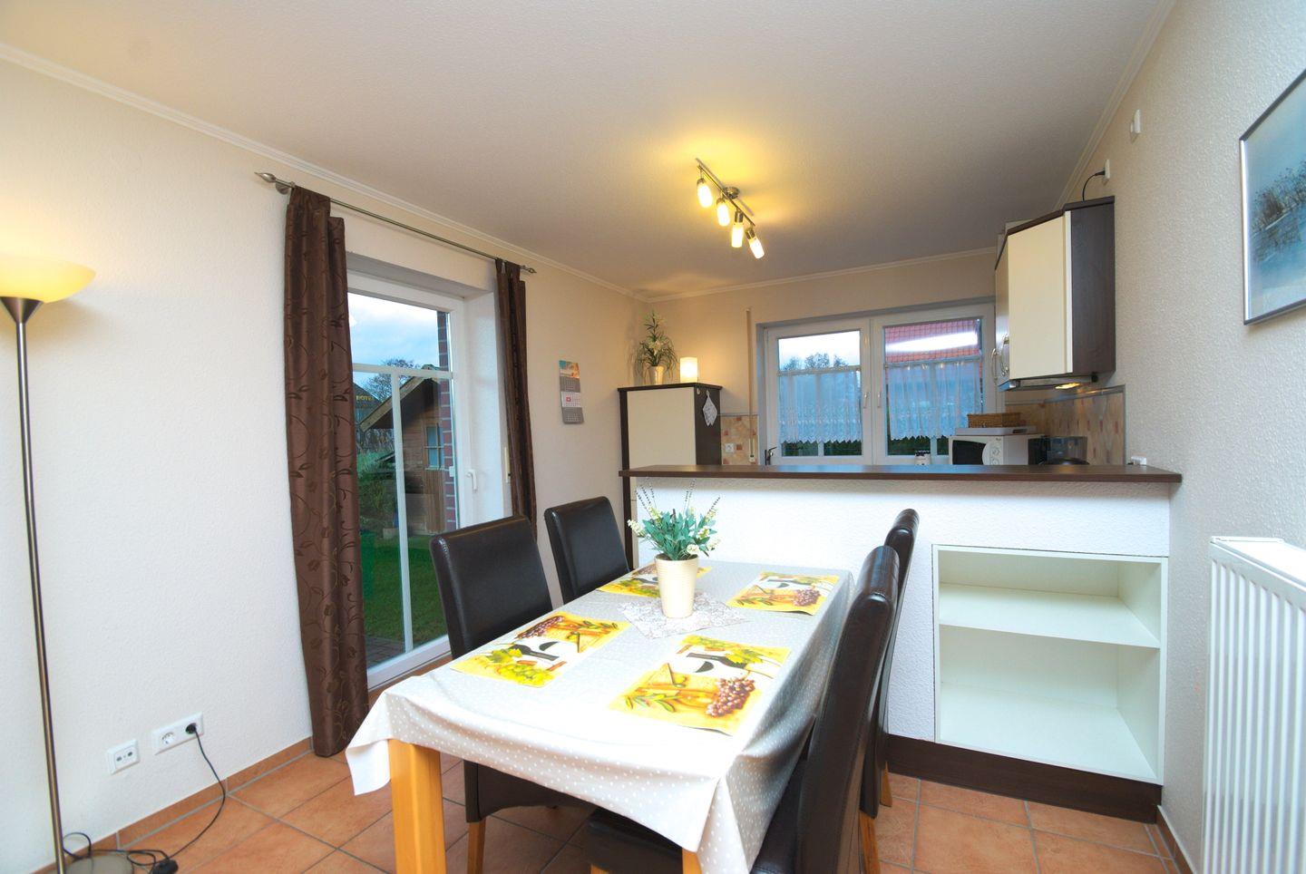 Die großzügige Ferienwohnung mit 93 m² bietet Platz für bis zu 4 Personen. Sie befindet sich im Erdgeschoss und ist ideal für Senioren oder Menschen mit einer benötigten Barrierefreiheit, da nur eine Stufe an der Haus- und Terrassentür zu überwinden ist. Die Wohnung umfasst zwei große Schlafzimmer, eines mit Boxspring-Doppelbett (1,80 x 2,00 m) und eines mit zwei Einzelbetten (1,40 x 2,00 m und 0,90 x 2,00 m). Das helle Wohnzimmer bietet eine gemütliche Couchecke mit Deichblick, SAT-TV und DVD-Player, sowie einen angrenzenden Essbereich mit offener, gut ausgestatteter Küche. Zur Ausstattung gehören unter anderem Cerankochfeld, Kühlschrank mit Gefrierfach, Backofen, Spülmaschine und Mikrowelle. Das Badezimmer ist mit einer großzügigen, barrierefreien Dusche und einem separaten Gäste-WC mit Waschmaschine ausgestattet. Die Wohnung ist komplett gefliest, mit Fußbodenheizung und zusätzlich Heizkörpern. Auf der Terrasse stehen Gartenmöbel bereit, und der Garten ist vollständig eingezäunt und verfügt über ein Gartenhaus mit Steckdose. Ein Parkplatz ist direkt vor der Wohnung verfügbar. Hunde sind herzlich willkommen.
