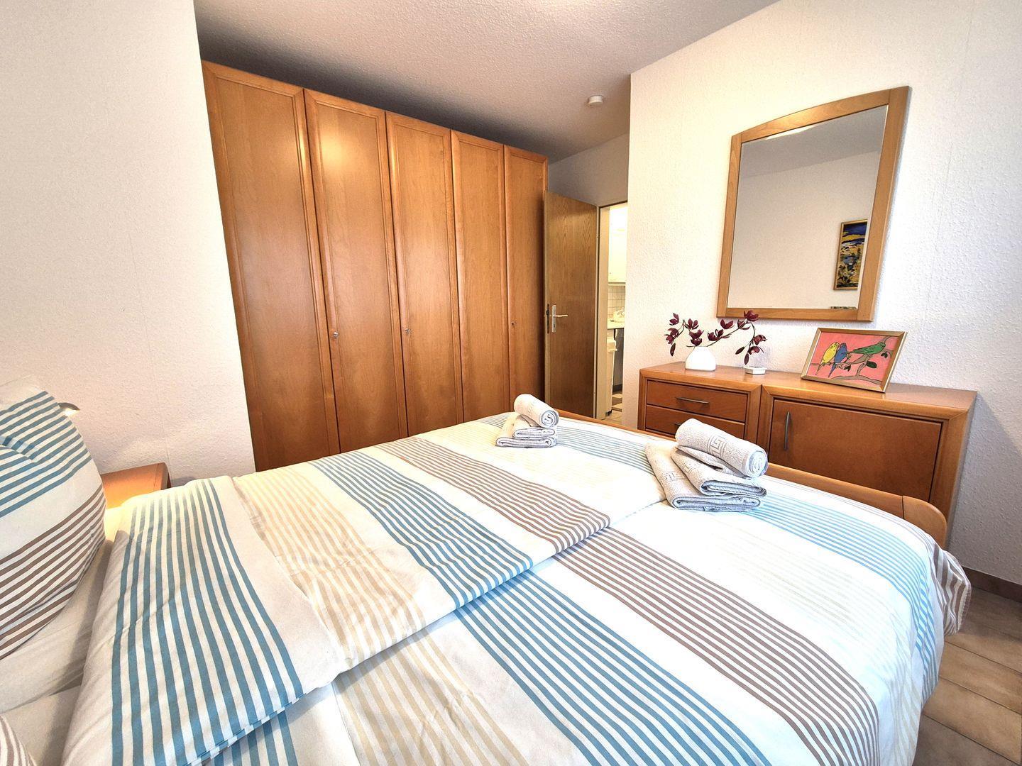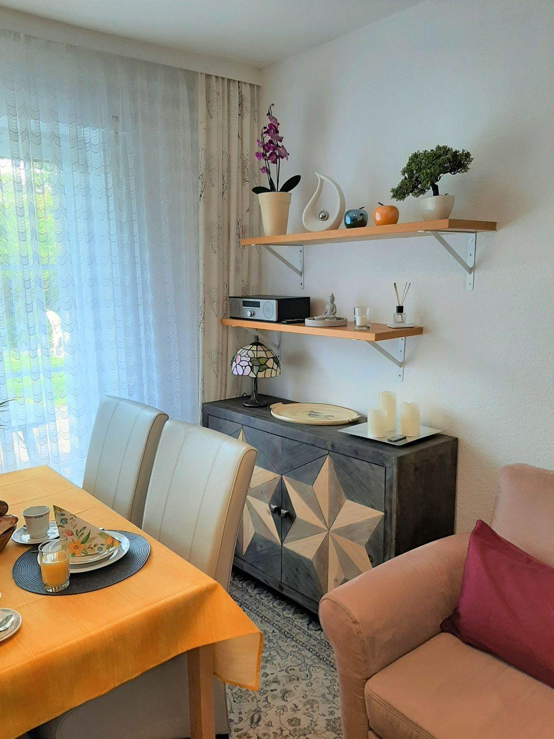 Sie verfügt über eine ansprechende Einrichtung. Der Wohn/Essbereich bietet genügend Platz zum Entspannen. Eine voll ausgestattete Küche, mit allem was man braucht, runden diese Wohnung ab. Weiter finden Sie ein gemütliches Schlafzimmer (Bett 180 x 200 cm) sowie ein Duschbad.