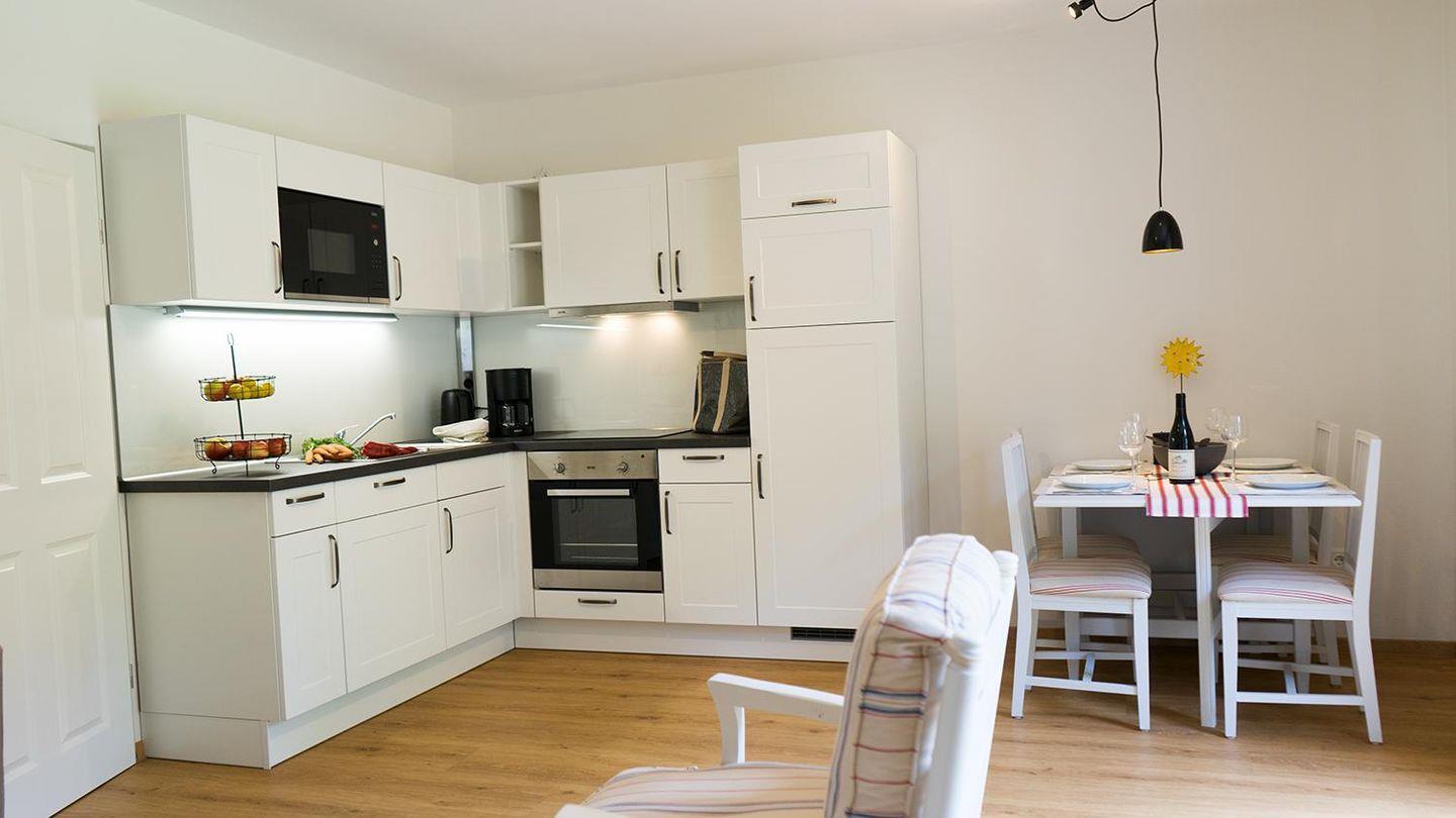 Die gut ausgestattete Küche mit Backofen, Herd, Spülmaschine und Mikrowelle lädt zum gemeinsamen Kochen ein. Am Esstisch oder auf der bequemen Sofaecke kannst du gesellige Abende verbringen. Zur Unterhaltung stehen dir ein TV, ein DVD-Player und kostenloses WLAN zur Verfügung.