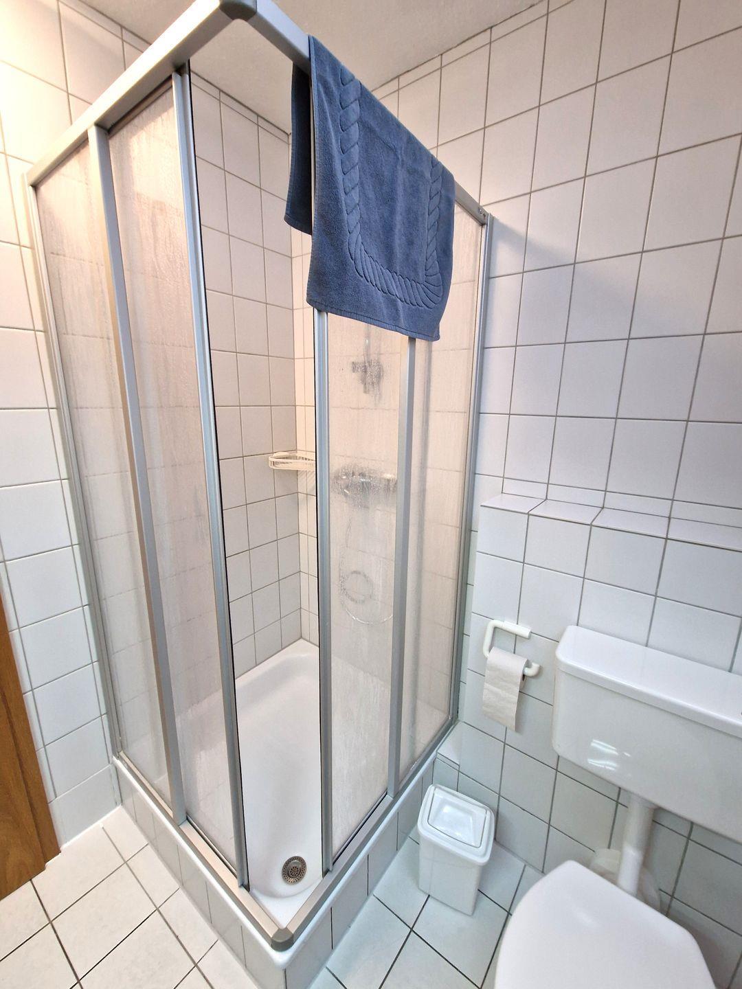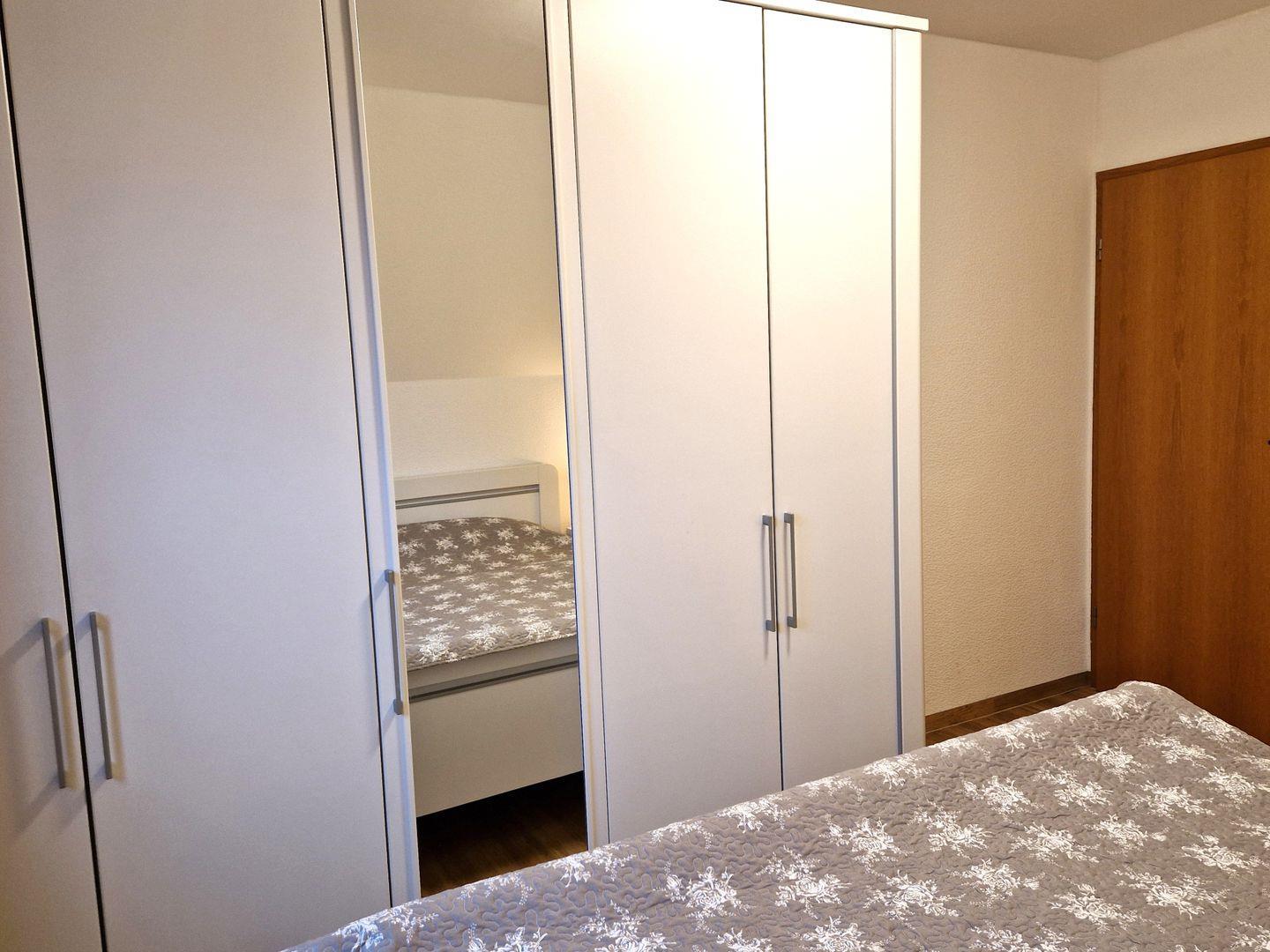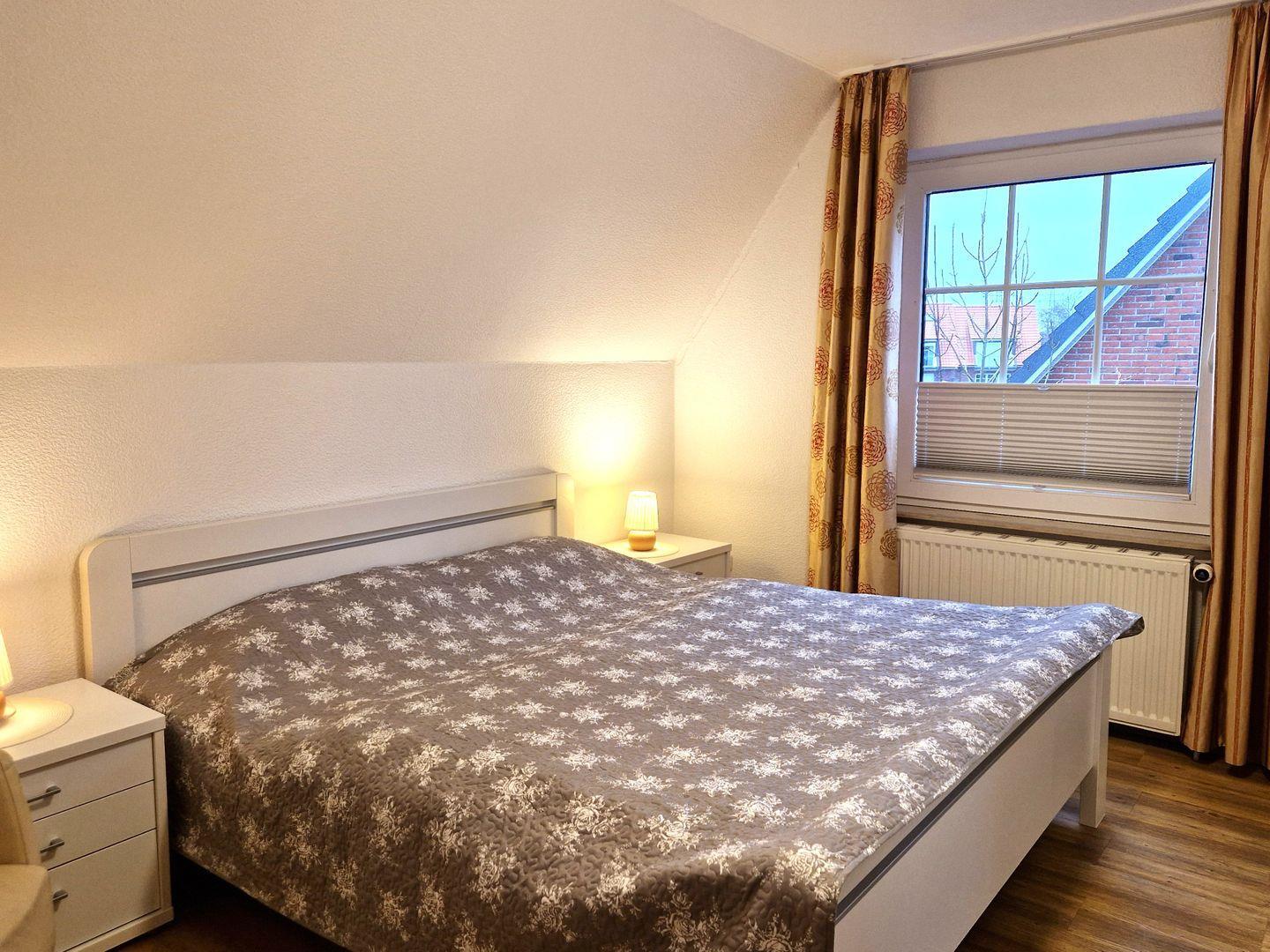 Weiter finden Sie hier ein gemütliches Schlafzimmer mit einem Doppelbett. Ferner verfügt die Wohnung über ein Duschbad.