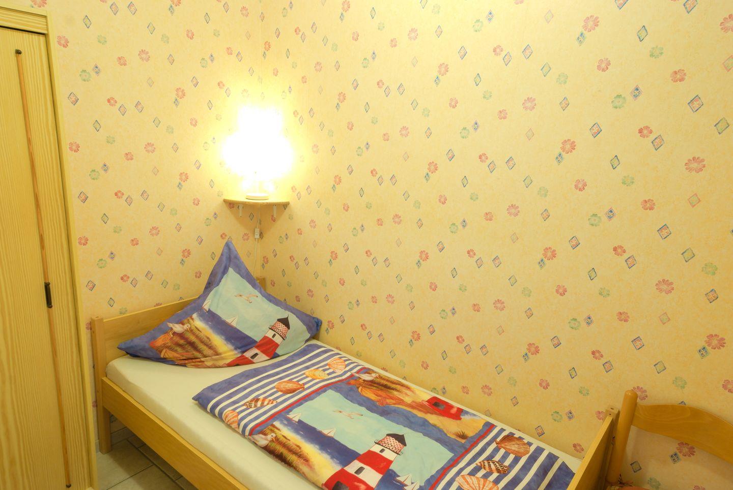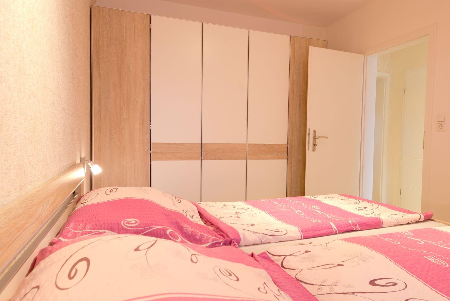 Die Wohnung bietet ein gemütliches Schlafzimmer. Im ersten Schlafzimmer finden Sie ein komfortables Doppelbett (180 x 200 cm) sowie einen großen Kleiderschrank. Das zweite Schlafzimmer ist hinter einer kleinen Tür im Wohnzimmer mit einem Einzelbett ausgestattet. Ein Kleiderschrank ist auch im Zimmer.
