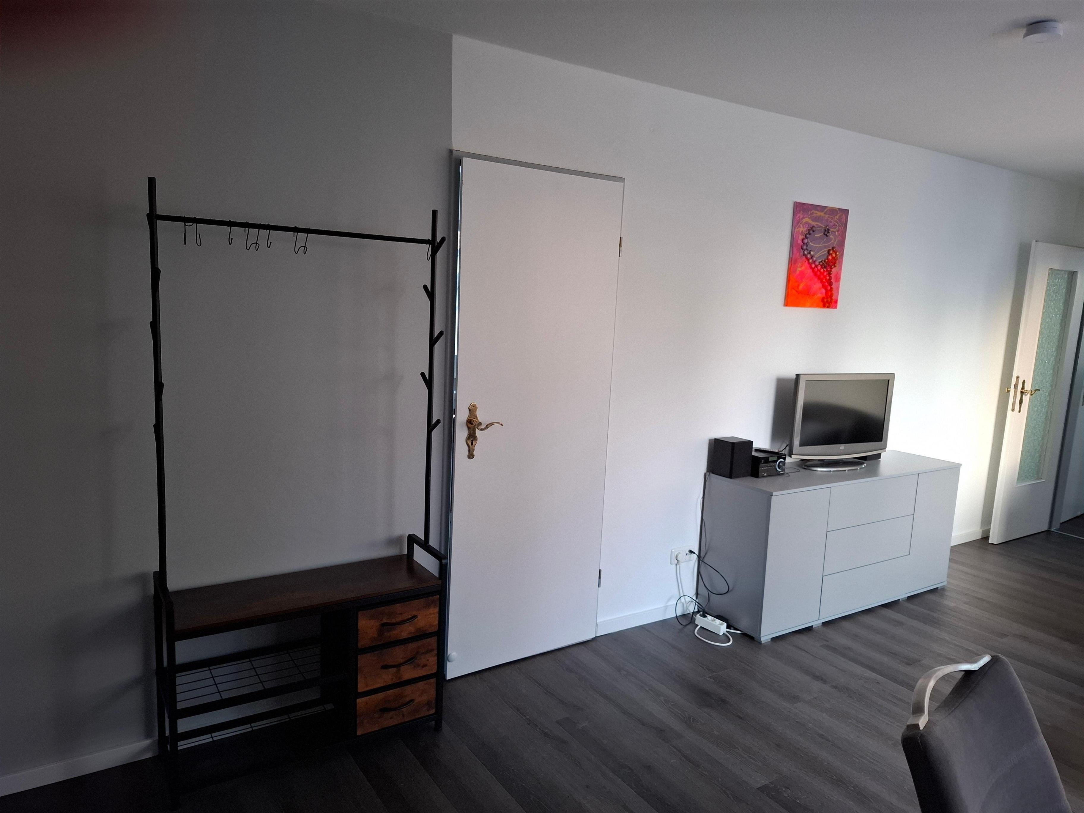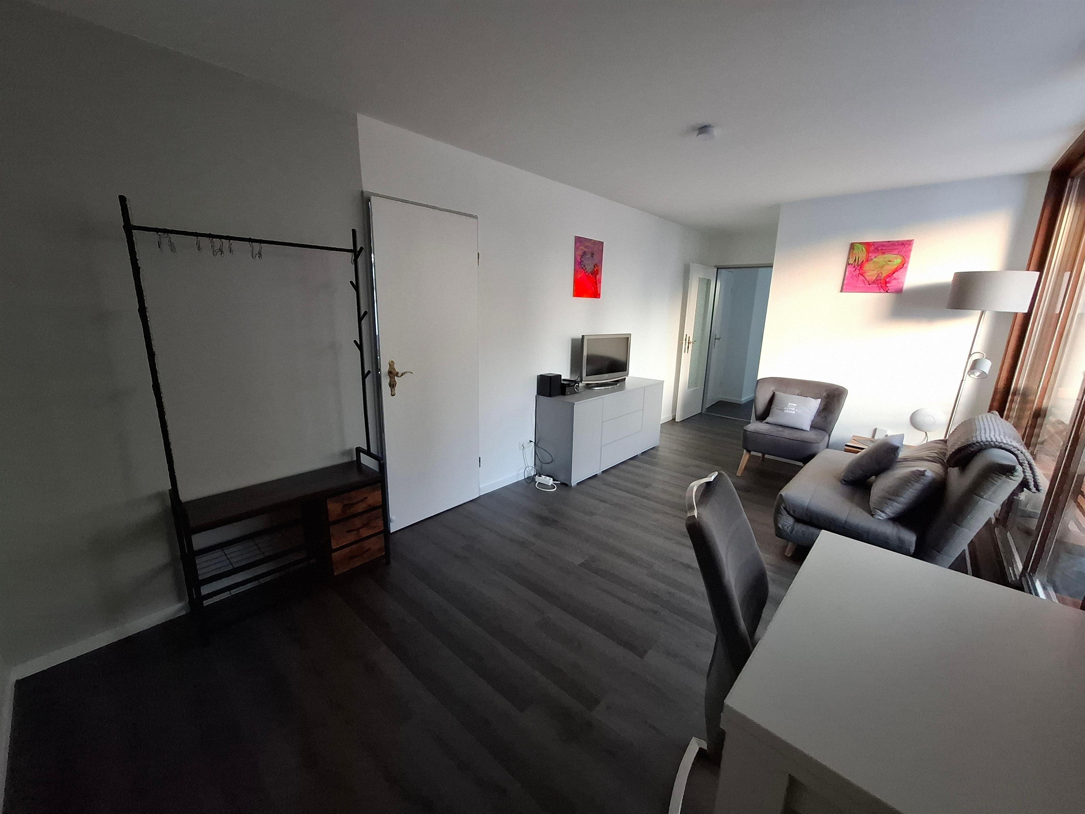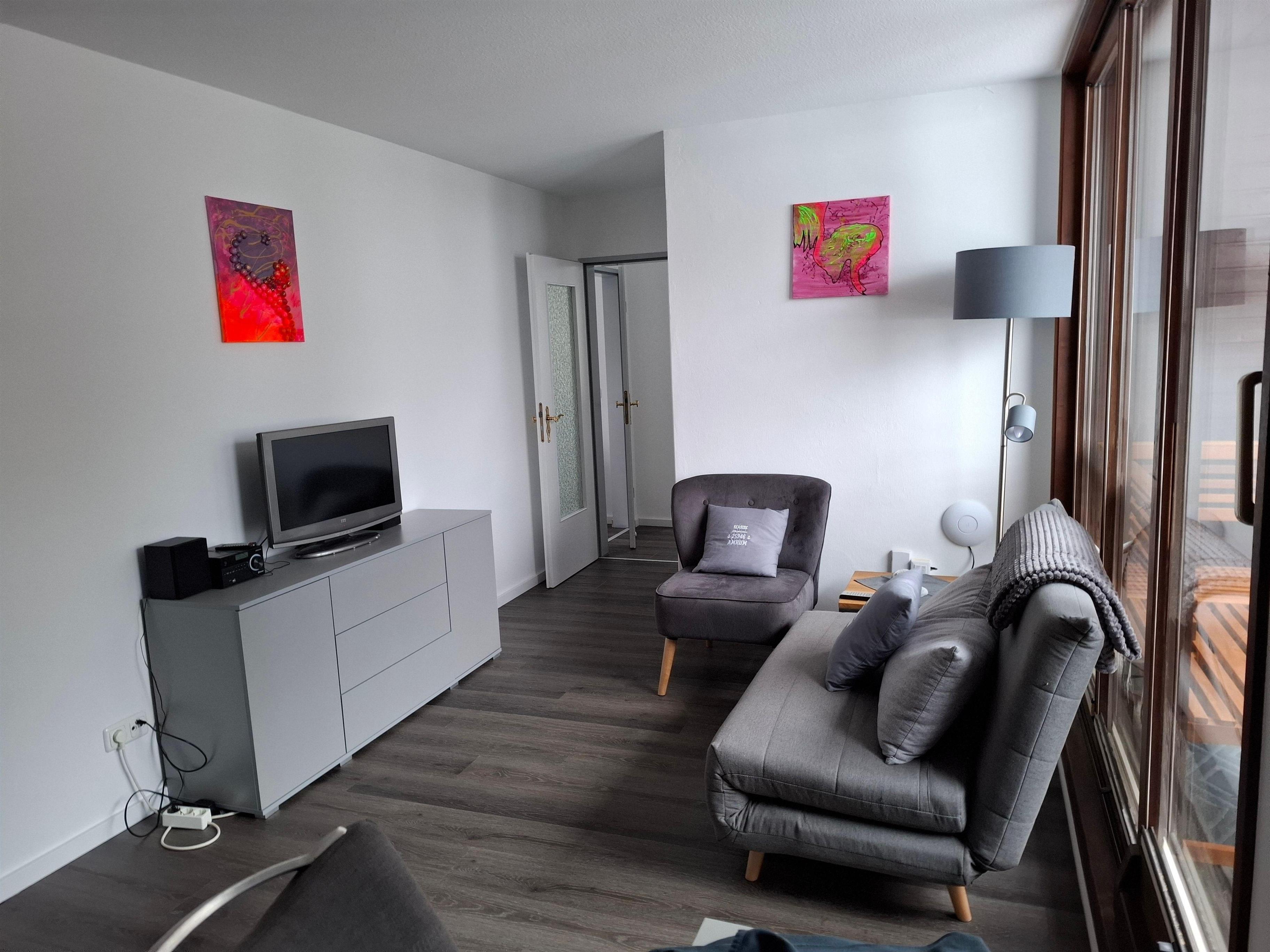 Wohnzimmer mit Essbereich, Fernseher, (Schlaf-)Couch und Sessel, WLAN
