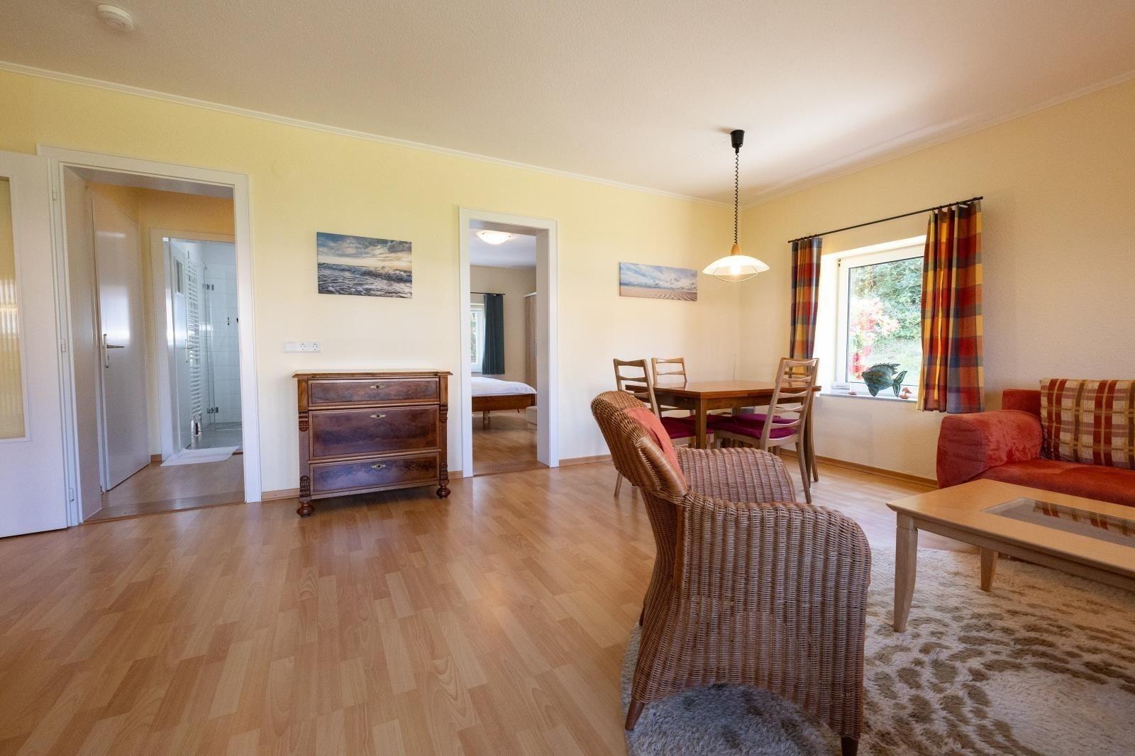 In nur 2 Kilometern Entfernung liegt das charmante Ortszentrum mit verschiedenen Einkaufsmöglichkeiten, Cafés und Restaurants, die zum Verweilen einladen. Zudem sind kulturelle Angebote und Veranstaltungen in der Umgebung schnell erreichbar. Die gute Anbindung ermöglicht eine unkomplizierte Anreise mit dem Auto oder öffentlichen Verkehrsmitteln, wodurch der Standort ideal für Tagesausflüge auf die Insel und in die Natur ist. Die Lage der Wohnung verspricht eine perfekte Kombination aus Erholung und Aktivität.