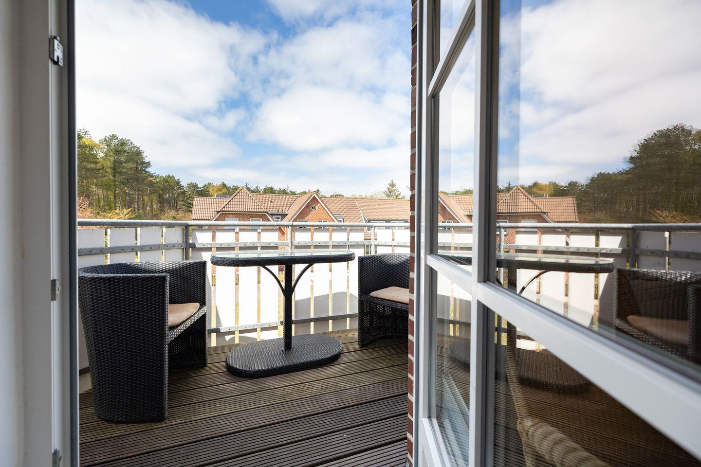 Die Wohnung verfügt über 1 Wohnküche mit WLAN, Sat-TV, 1 Schlafzimmer, 1 Badezimmer mit Dusche und WC; 1 offener West-Balkon mit Möbeln (April bis Oktober). Ein PKW-Stellplatz ist am Haus.