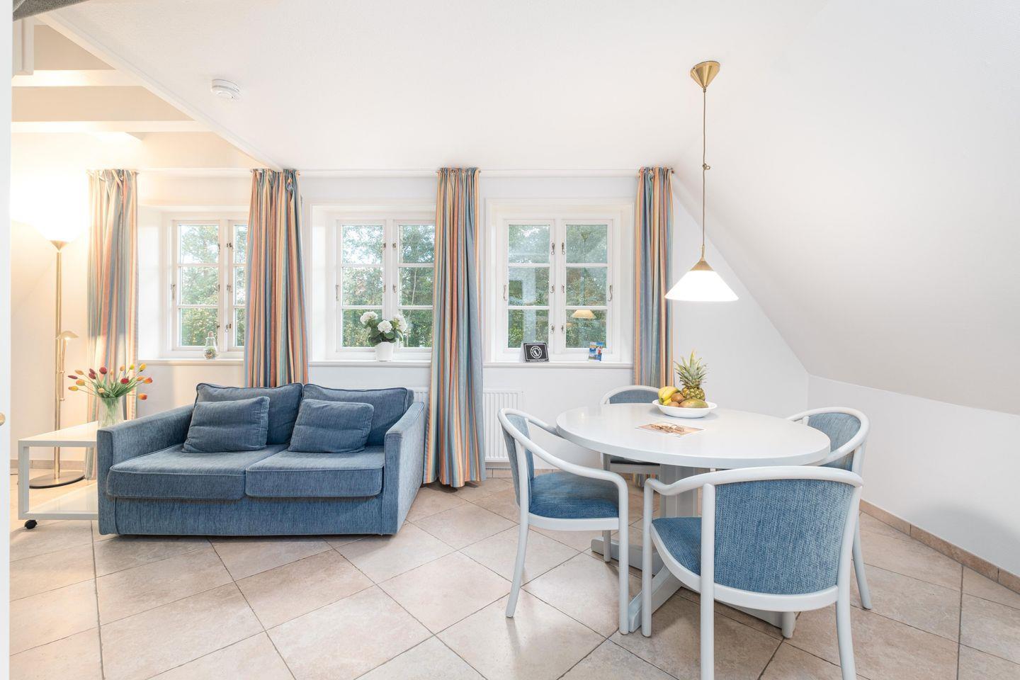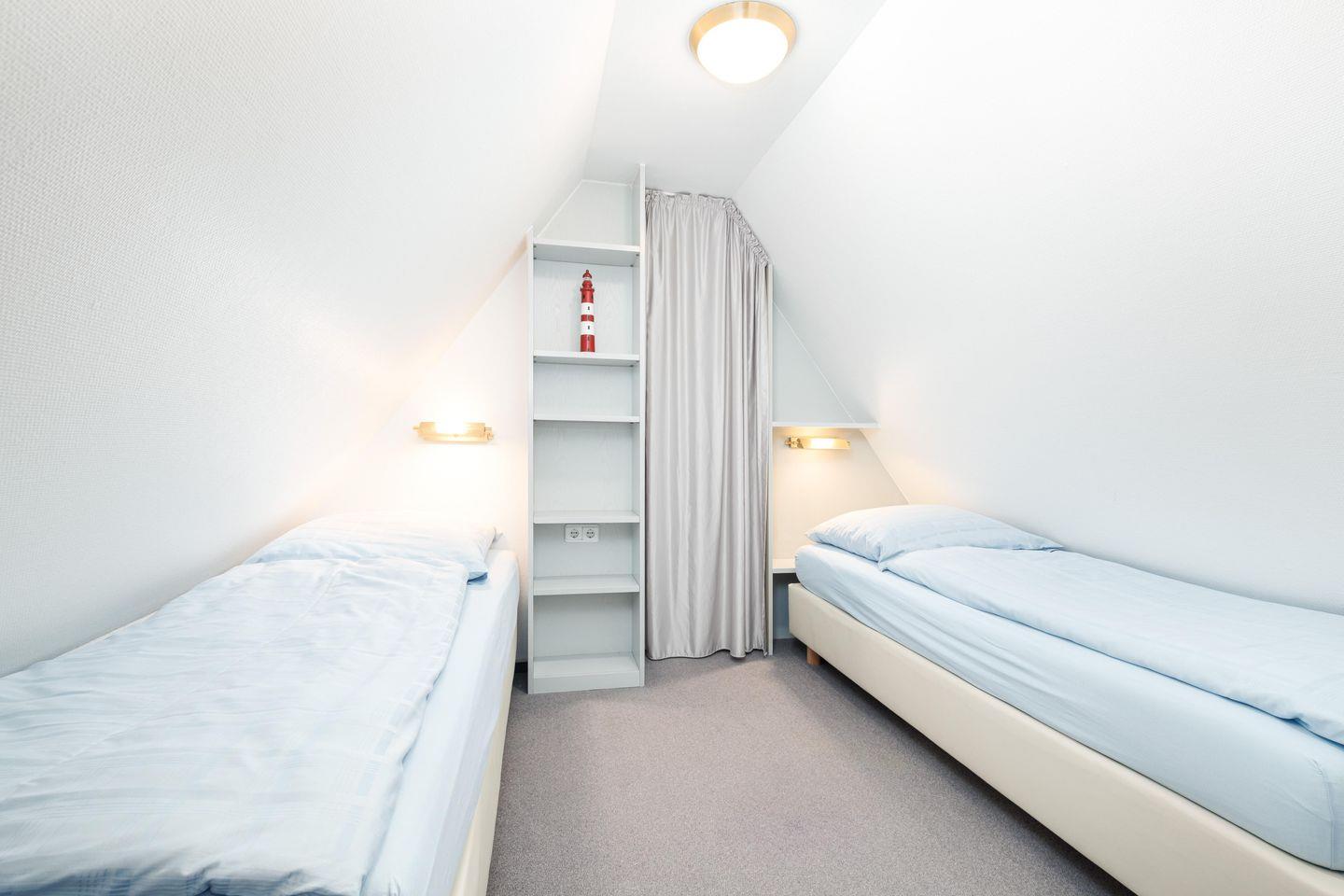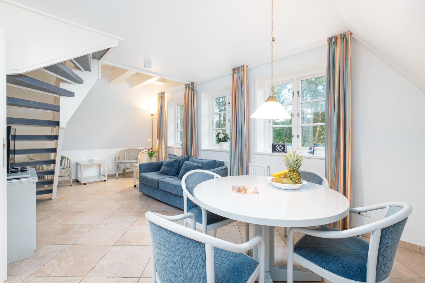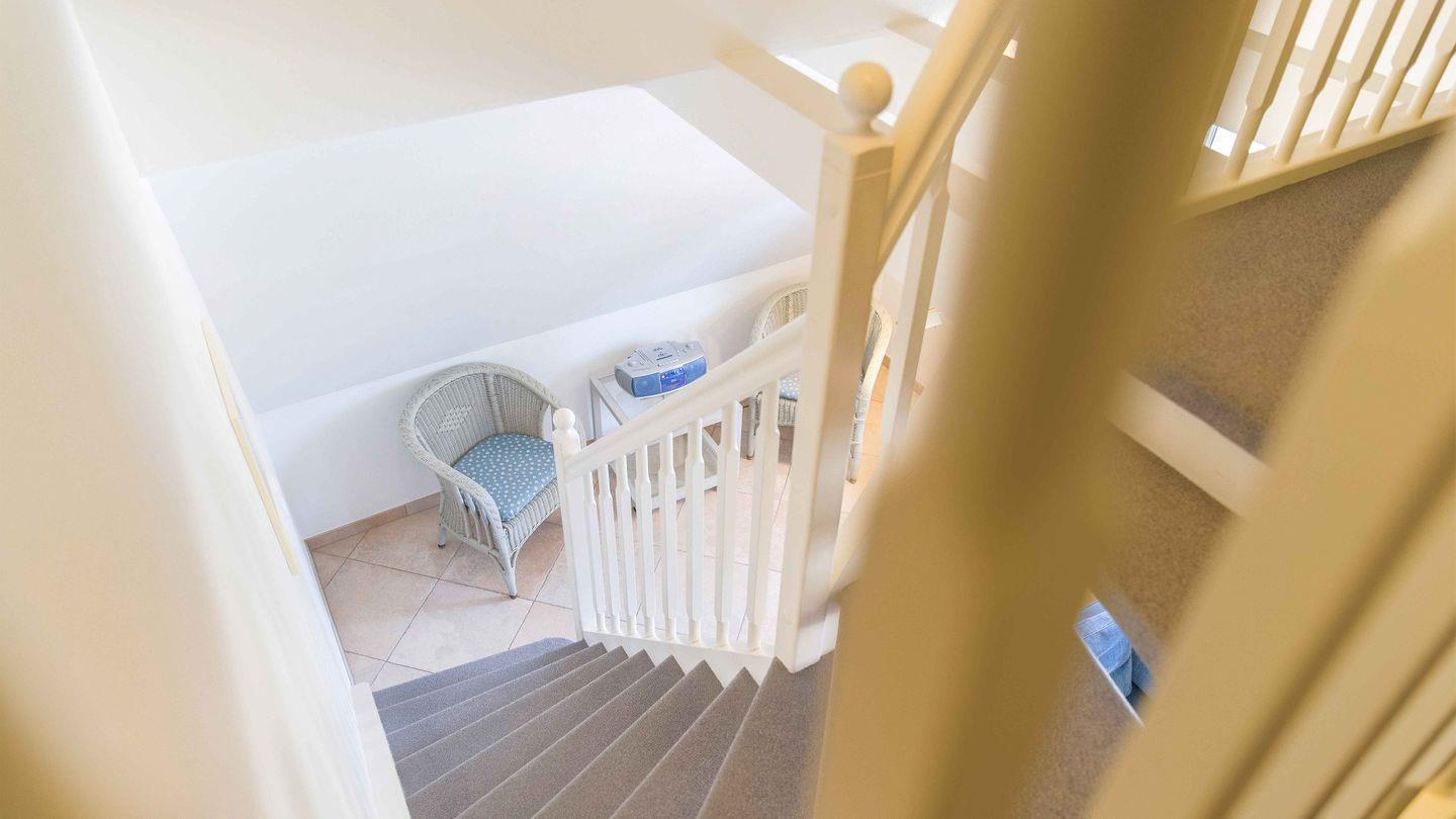 Obergeschoss über 2 Ebenen, für bis zu 4 Personen – ca. 60 qm mit einem Strandkorb im Garten (von Ostern bis Oktober),