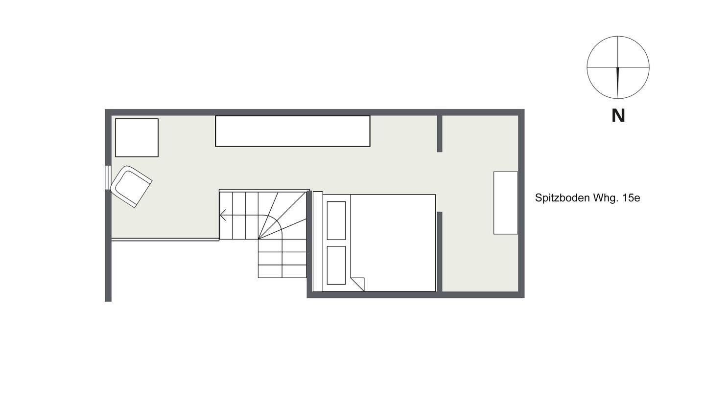 Wohn- / Esszimmer, Küche, Duschbad / WC sowie 1 Doppelschlafzimmer auf der offenen Empore.
