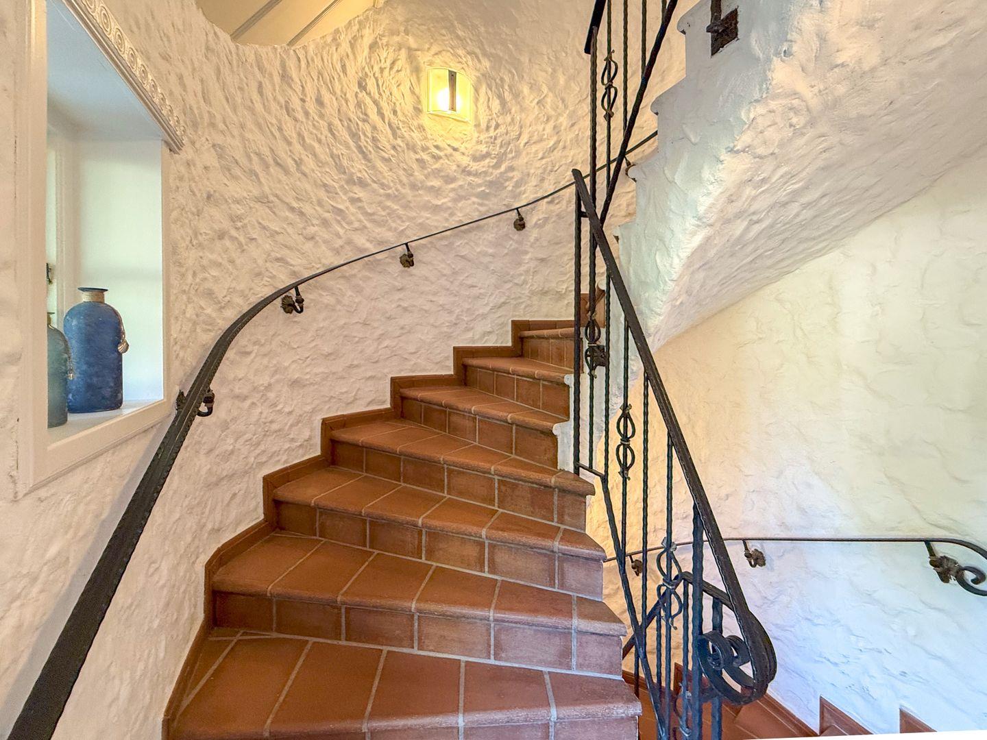 Schlafzimmer mit einem Doppelbett auf der offenen Empore (Treppe abgehend vom Wohnbereich)