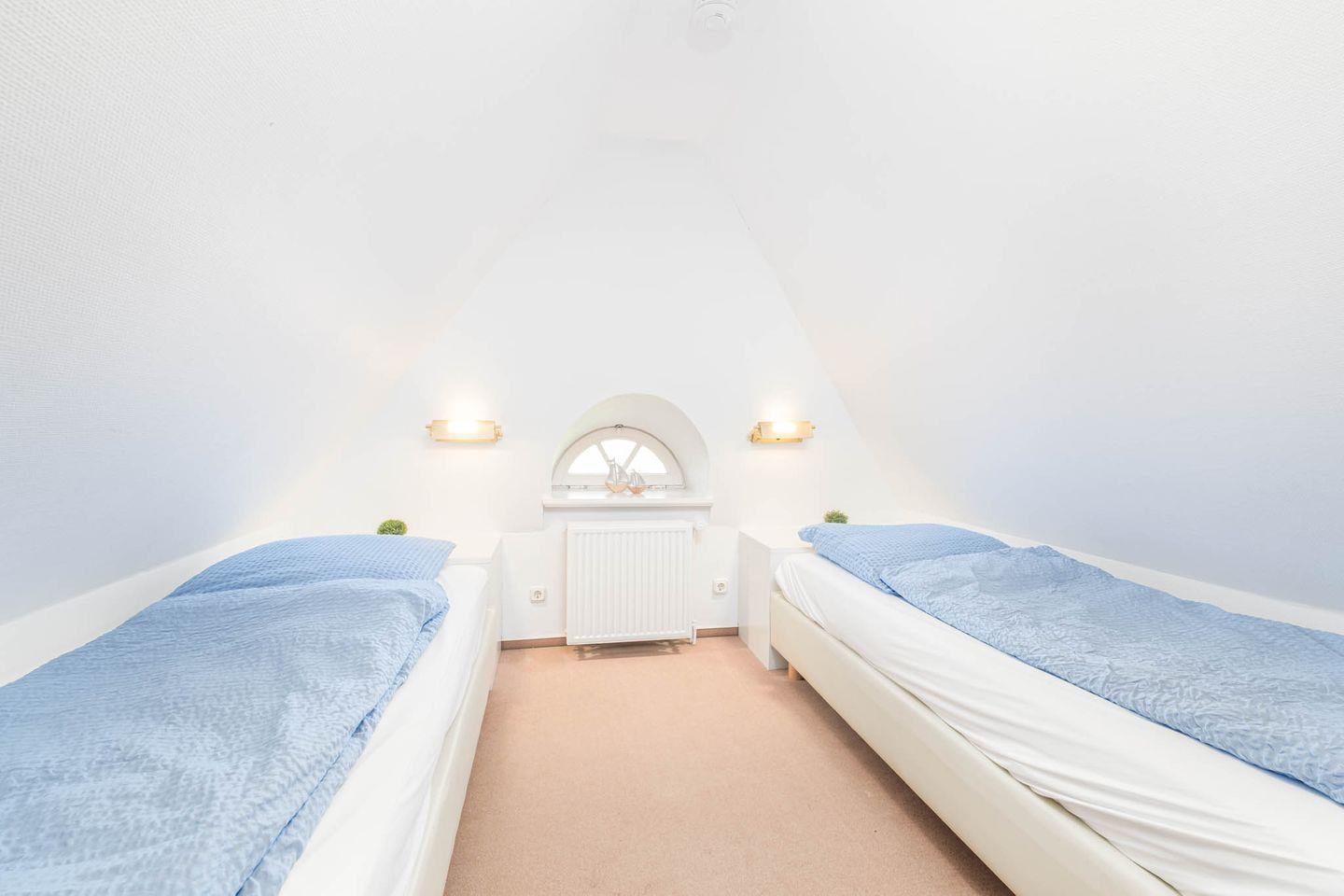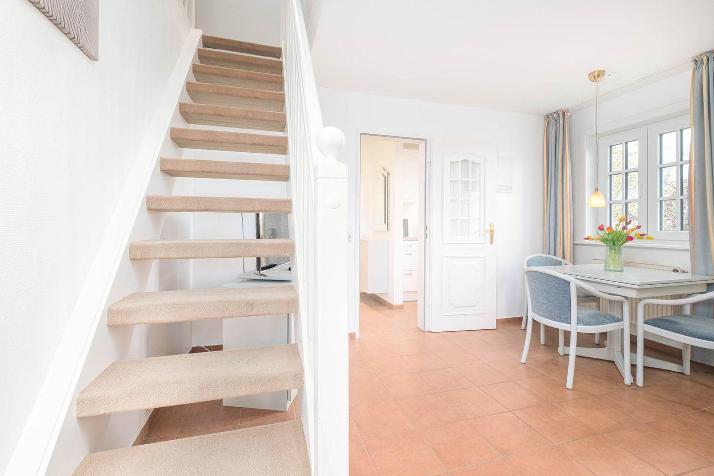Obergeschoss über 2 Ebenen – ca. 35 qm mit Terrasse auf dem Gartengrundstück, direkte Aussicht auf das Wattenmeer, bis 3 Personen, Hunde willkommen.