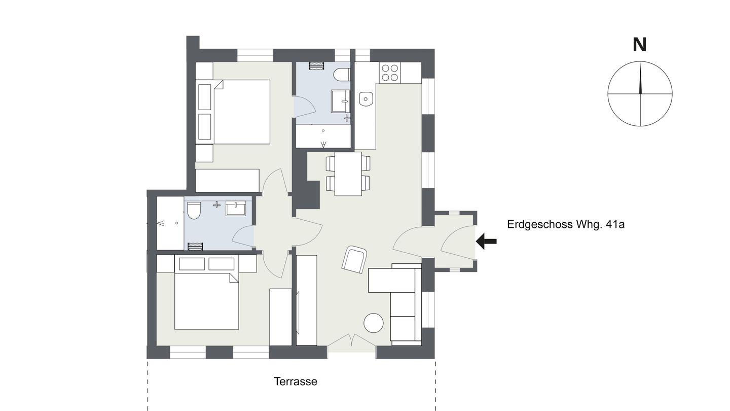 Die Erdgeschosswohnung im Haus Nis Randers ist ideal für Familien und bietet mit zwei Doppelschlafzimmern & zwei Bädern mit Terrasse und Strandkorb alles, was Sie für einen entspannten Urlaub benötigen.