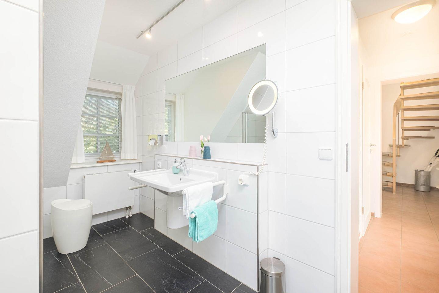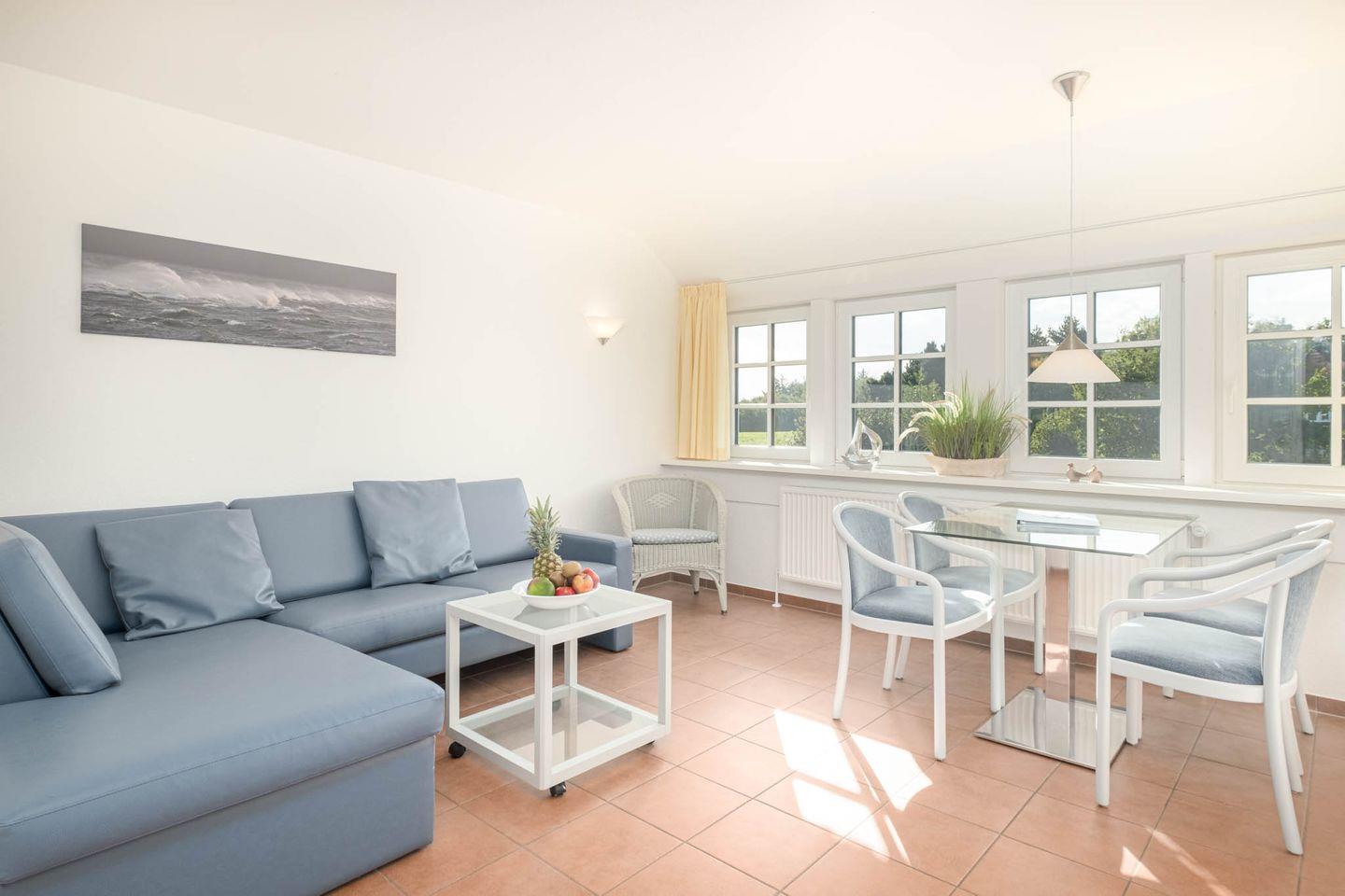 Im Obergeschoss unseres Witjhüs liegt die großzügige Ferienwohnung 5E – ideal für bis zu 4 Personen. Auf rund 80 m² Wohnfläche erwartet Sie stilvoller Komfort im gehobenen VAMERA-Standard.