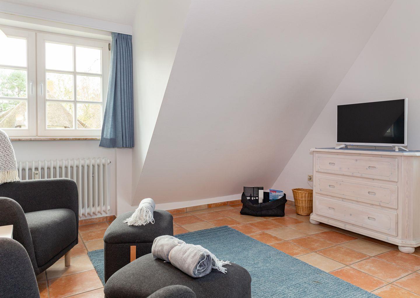 Abendsonne: eine wunderschöne Ferienwohnung im Reetdachhaus Pesel in Norddorf auf Amrum, WLAN, Meerblick, Garten, Sauna, Strandkorb
