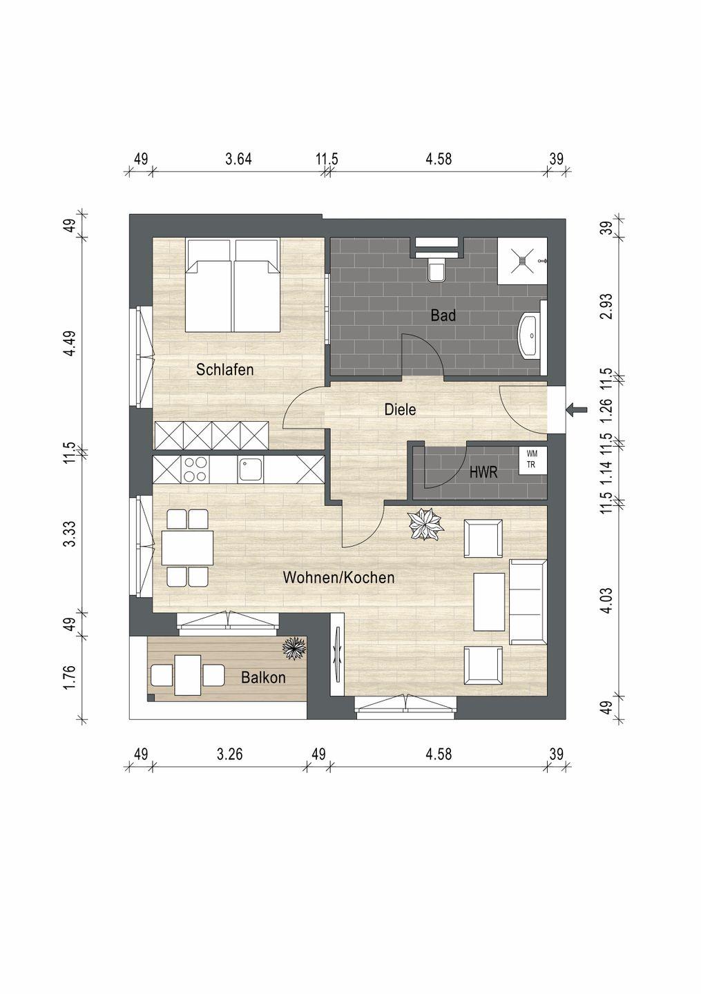 Wattwurm (7/6) - 71 m² FeWo, 4 Personen (max. 2 Erwachsene), 1 Schlafzimmer