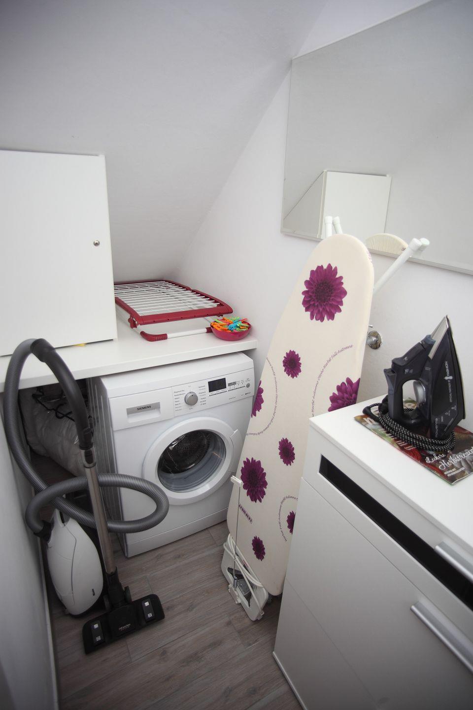 Im Abstellraum stehen eine Waschmaschine und ein Wäscheständer mit Wäscheklammern zur Verfügung. Zusätzlich finden Sie dort einen Staubsauger, ein Bügelbrett mit Bügeleisen sowie einen Tresor zur sicheren Aufbewahrung Ihrer Wertsachen.