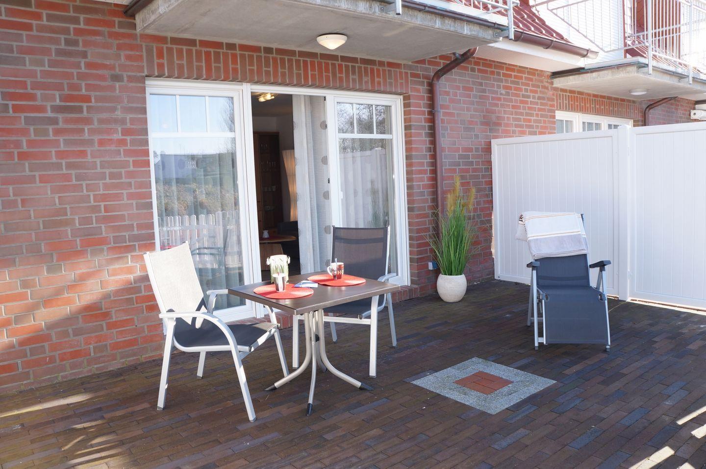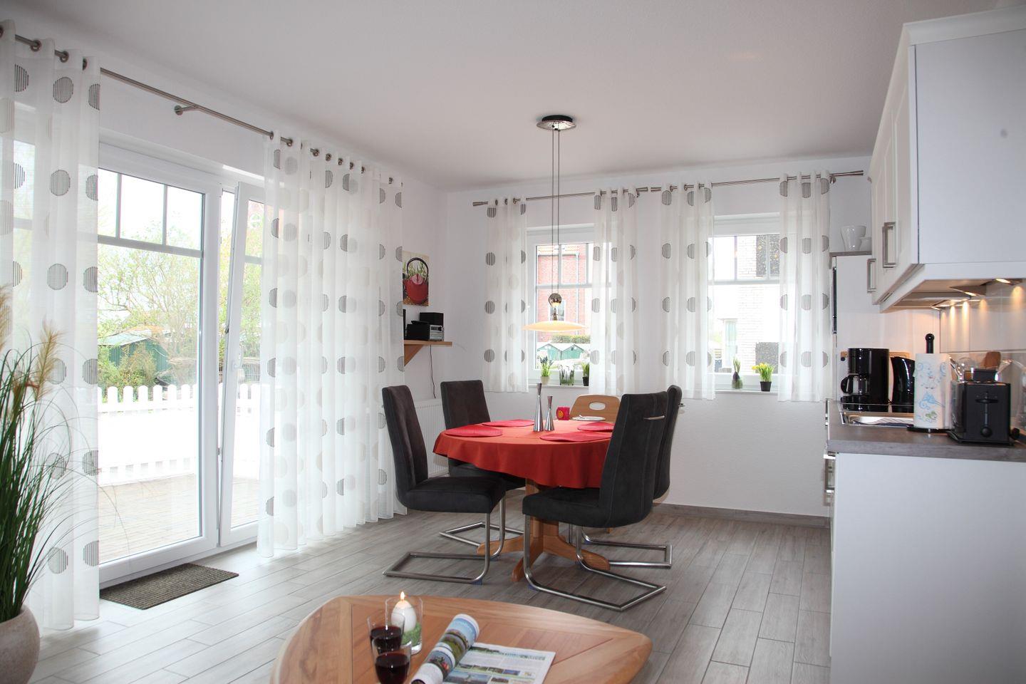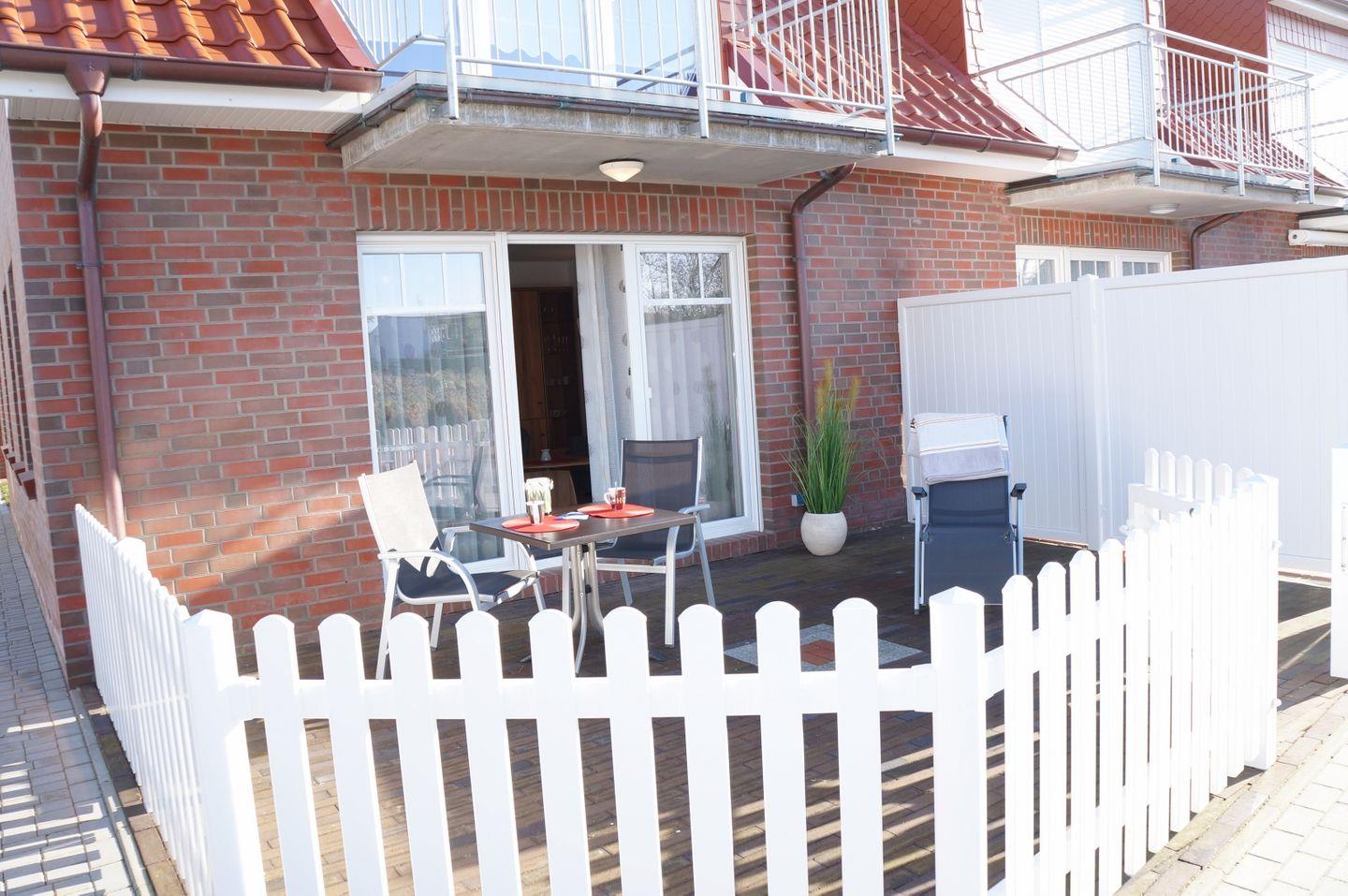 54 qm, bis zu 4 Pers., 1 Schlafzimmer, Terrasse mit Blick auf den Deich, Erdgeschoss, Schlafsofa