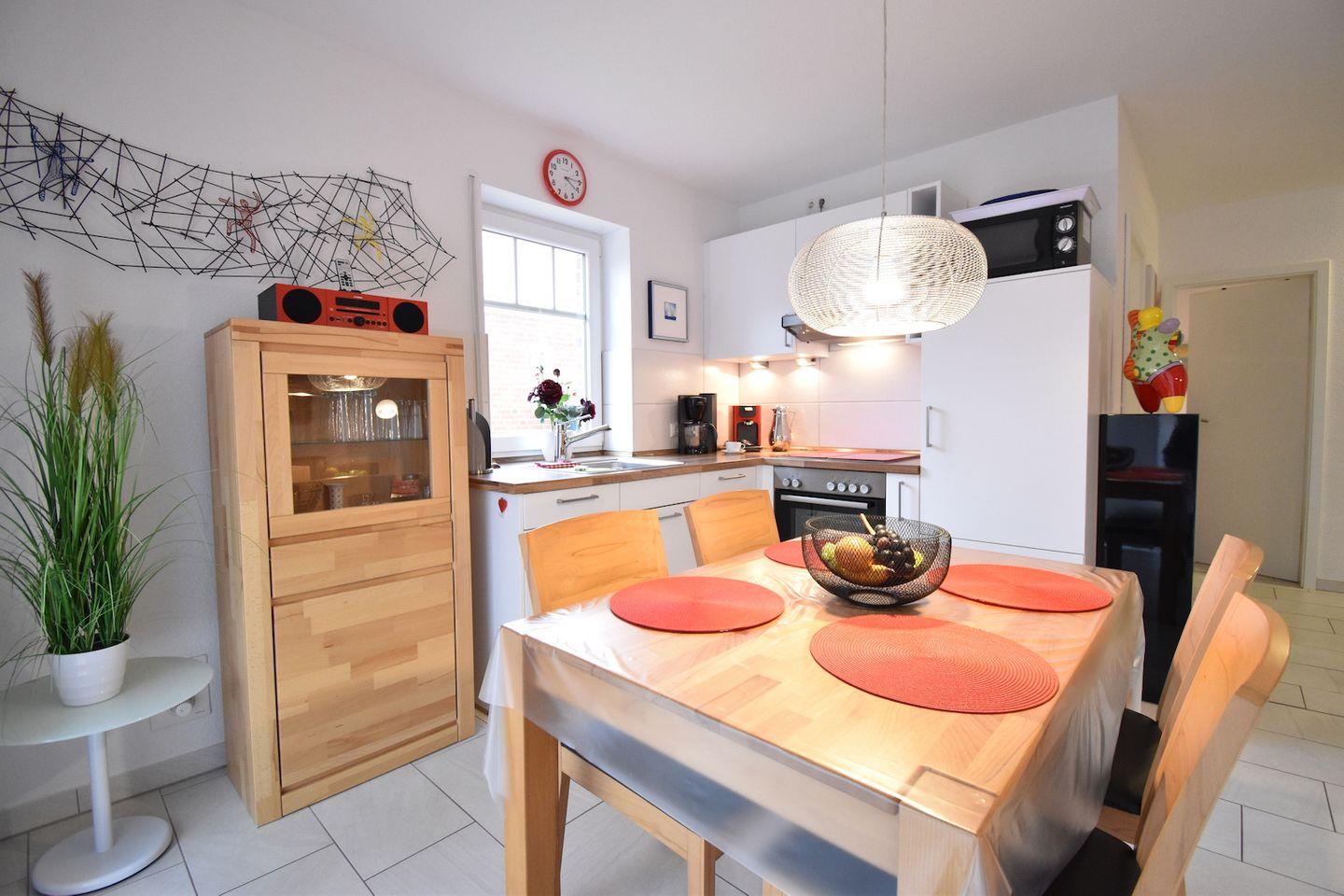 Ein weiteres Highlight der Wohnung ist die große Terrasse mit schönem Garten in Südwestlage, die zum entspannten Verweilen im Freien einlädt. Hier können Sie die frische Nordseeluft genießen oder es sich auf einer der Sonnenliegen bequem machen. Die Gartenmöbel sind ideal, um Mahlzeiten im Freien zu servieren. Ein Privatparkplatz direkt am Haus steht Ihnen ebenfalls zur Verfügung wie auch ein separater Fahrradraum mit eBike-Ladestation.