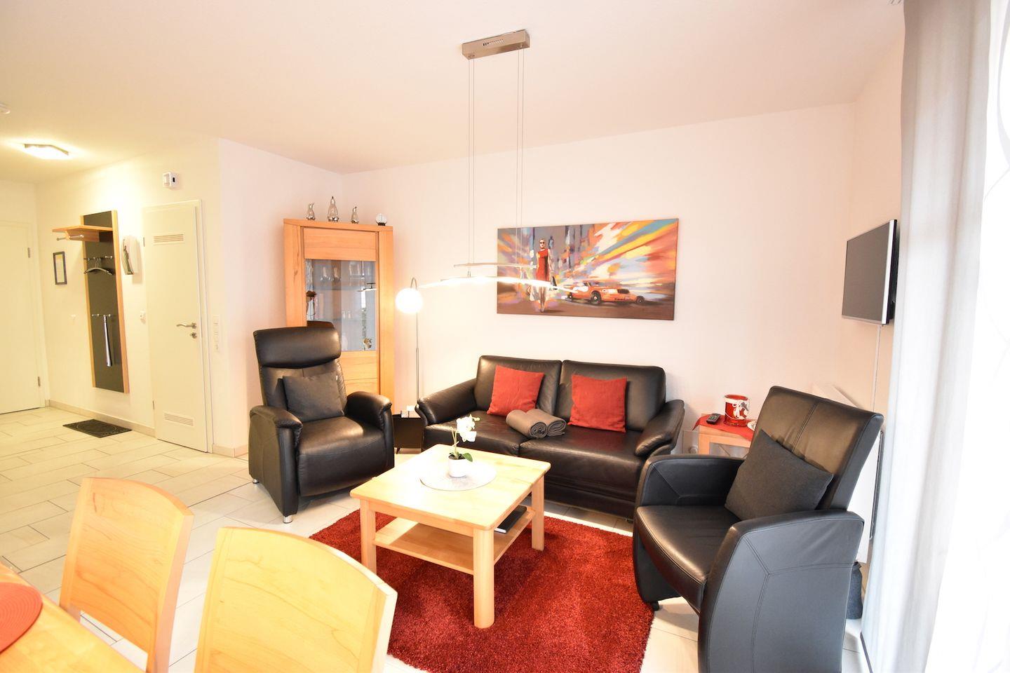 Die Wohnung befindet sich in zentraler, ruhiger Lage (Anliegerstraße) mitten im Ferienort. Restaurants, Cafés, Eisdielen, Bäckereien und eine Vielzahl von Geschäften sind fußläufig in wenigen Minuten erreichbar, ebenso Attraktionen wie das Ocean-Wave-Erlebnisbad mit Saunadeck, die Seehund-Aufzuchtstation, Abenteuergolf, Bowling und weitere. Zusätzlich zum erholsamen Strandurlaub bietet die Region Möglichkeiten für Schiffsausflüge zu den Inseln, sportliche Aktivitäten wie Radtouren, Reiten, Surfen, Golfen. Für kulturelle Abwechslung sorgen zahlreiche örtliche Veranstaltungen, so z. B. Konzerte, Führungen, Vorträge; mehrere sehenswerte Museen der näheren Umgebung laden zu einem Besuch ein.