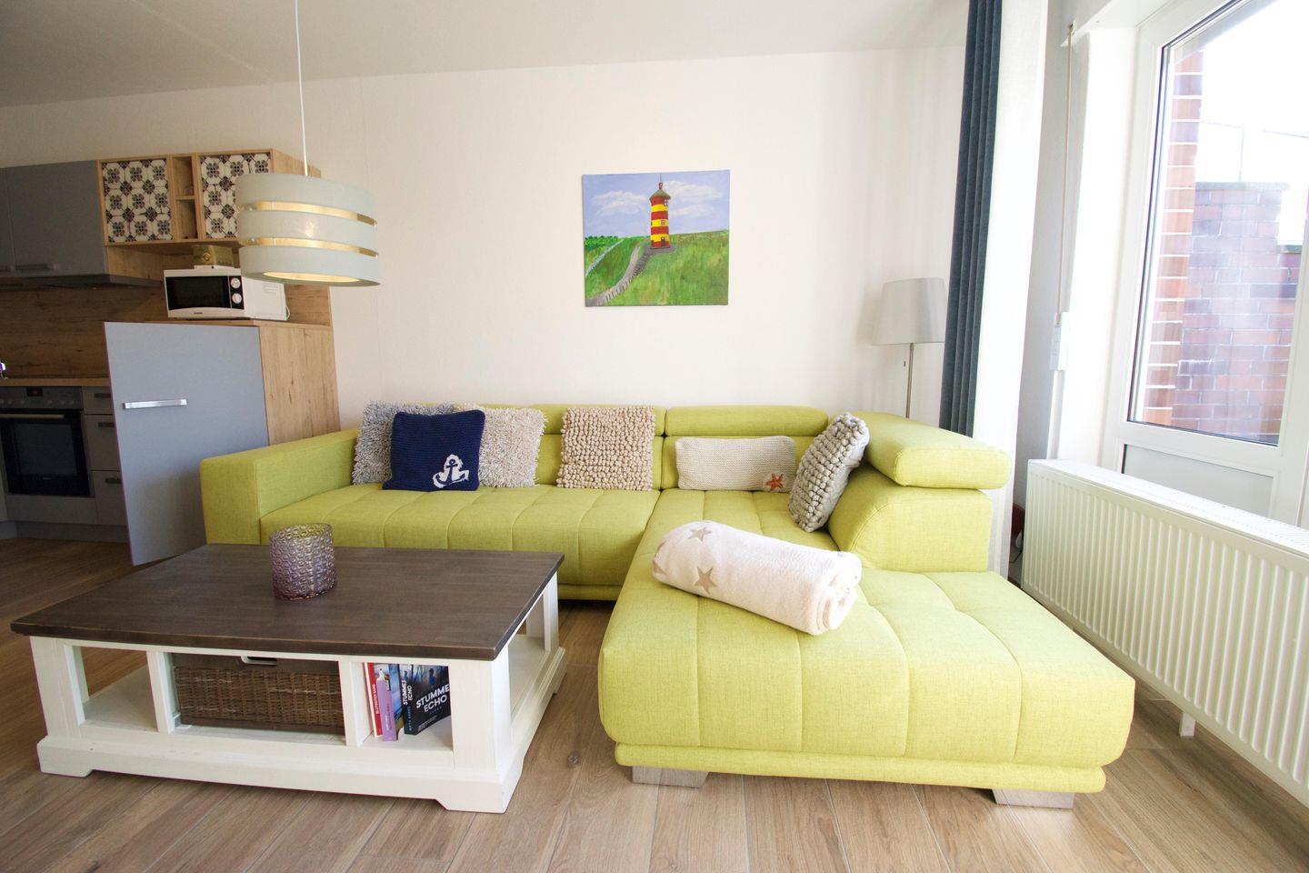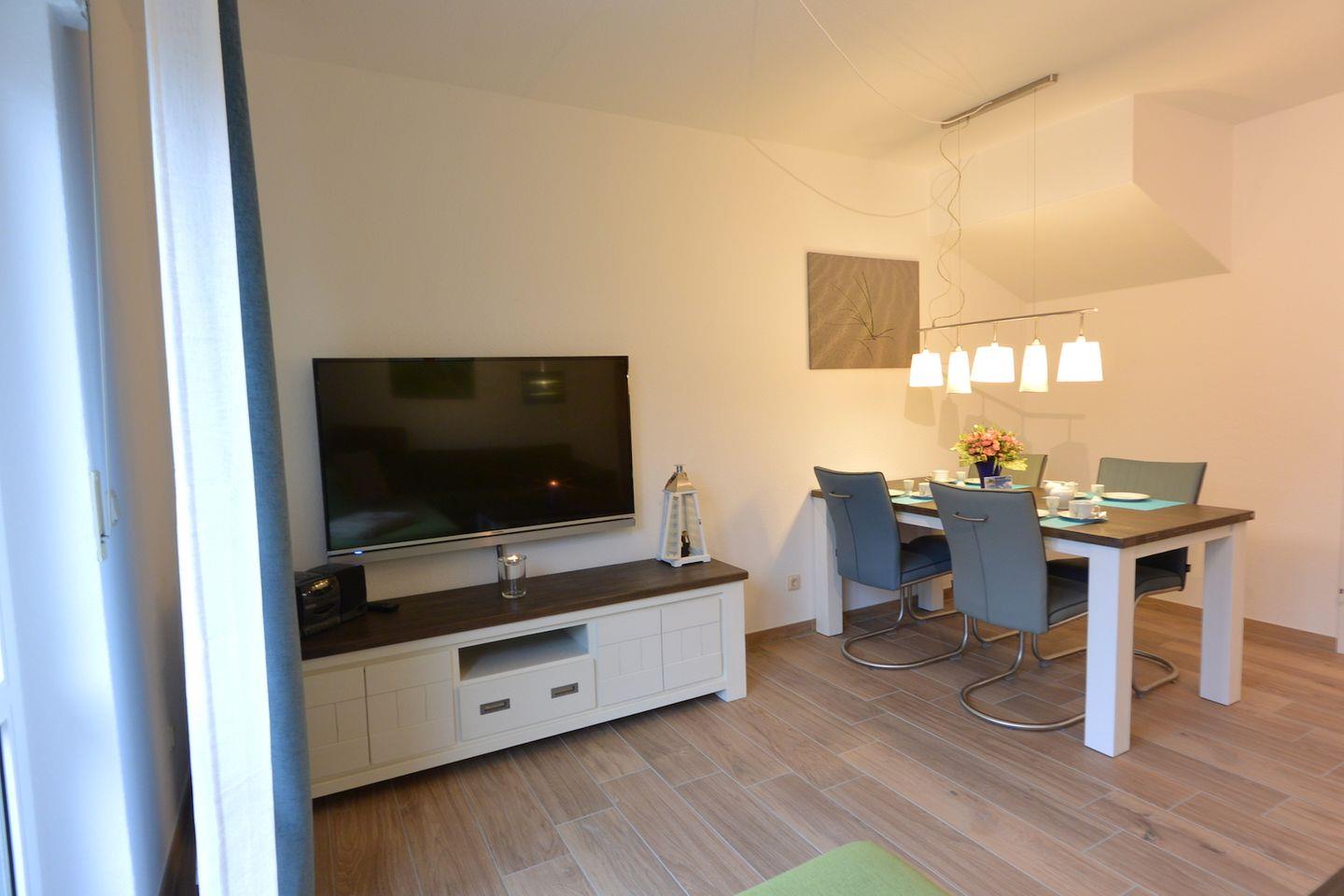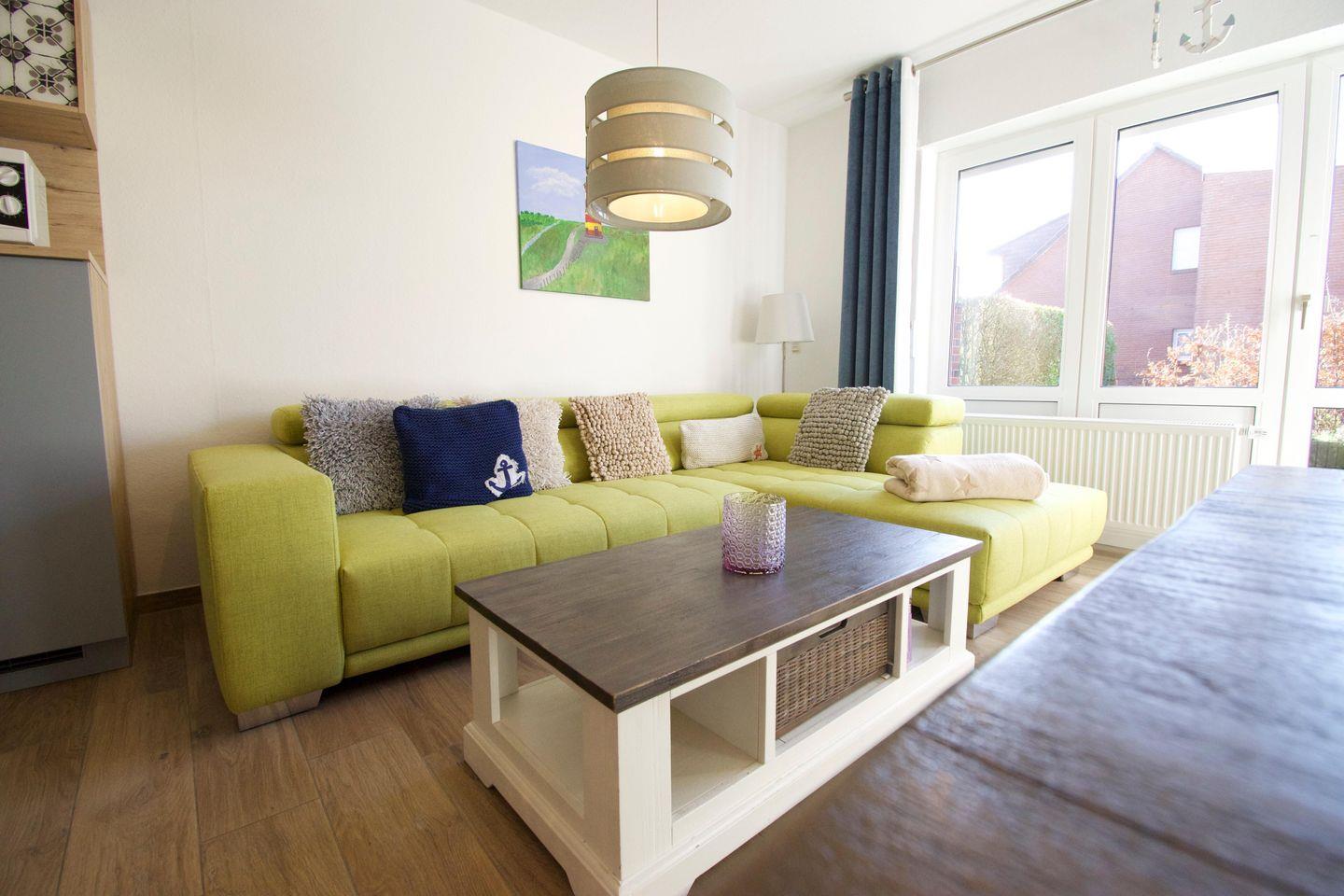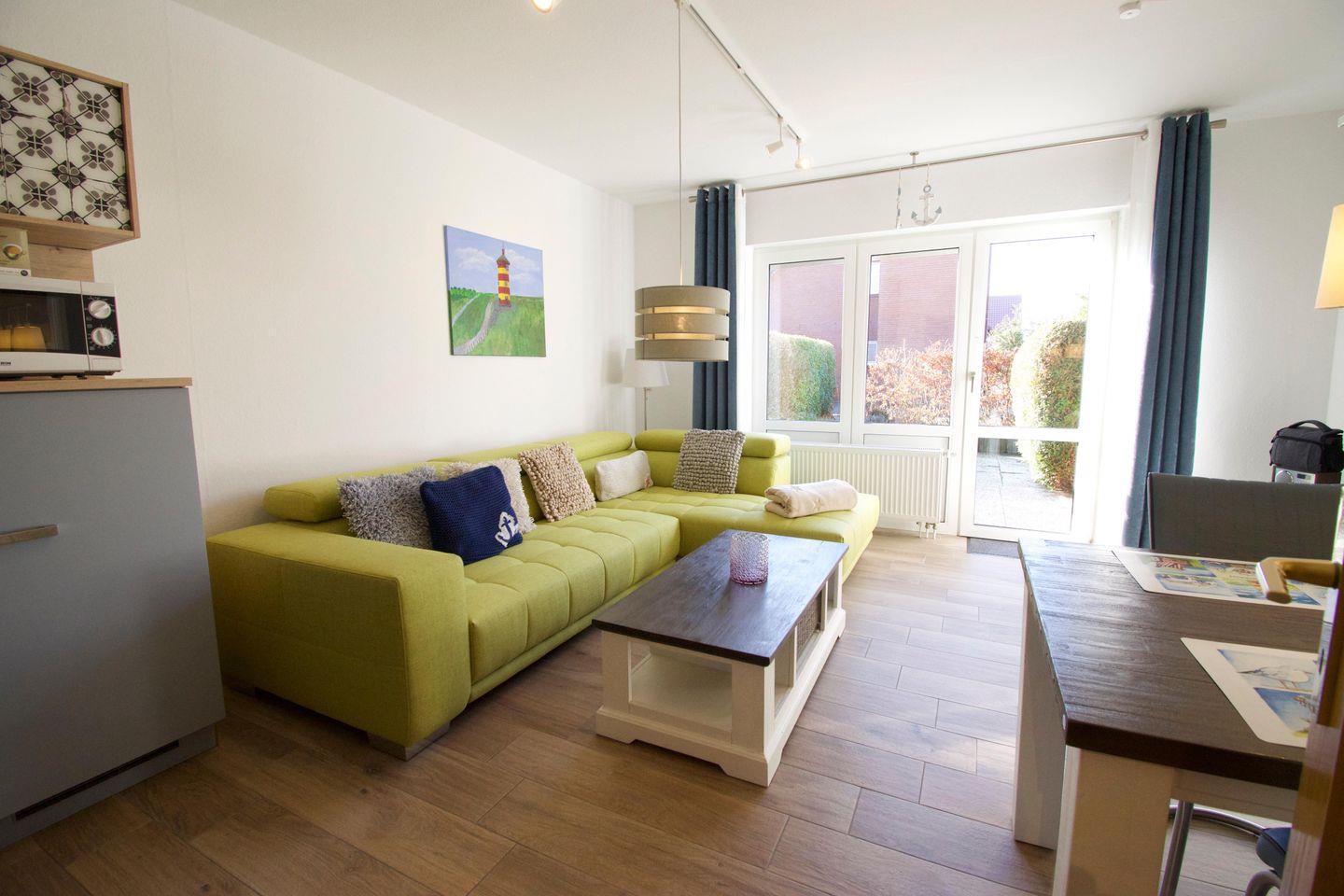 „Dat Tidenhus“ in Norden-Norddeich bietet auf 76 m² Platz für bis zu 4 Personen und ist ideal für Familien sowie Allergiker geeignet. Es verfügt über zwei Schlafzimmer, einen Wohnbereich mit WLAN und TV, eine voll ausgestattete Küche, eine Terrasse mit Gartenmöbeln und Privatparkplatz. Der Strand ist nur 450 Meter entfernt.