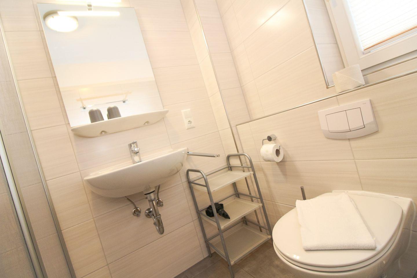 Sie wohnen in einer 55 m² großen, 3-Zimmer-Wohnung, mit 2 getrennten Schlafzimmern im Erdgeschoss. Küche und Bad verfügen jeweils über Tageslicht. Die gemütliche Wohn-Küche hat eine Küchenzeile mit großem Kühlschrank, Cerankochfeld, Backofen und Mikrowelle, und ist voll eingerichtet.