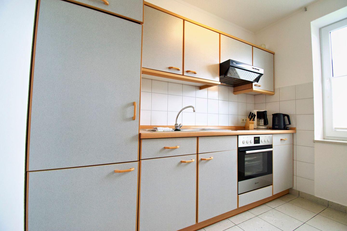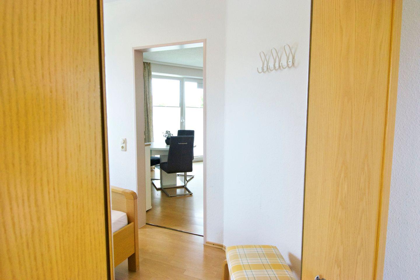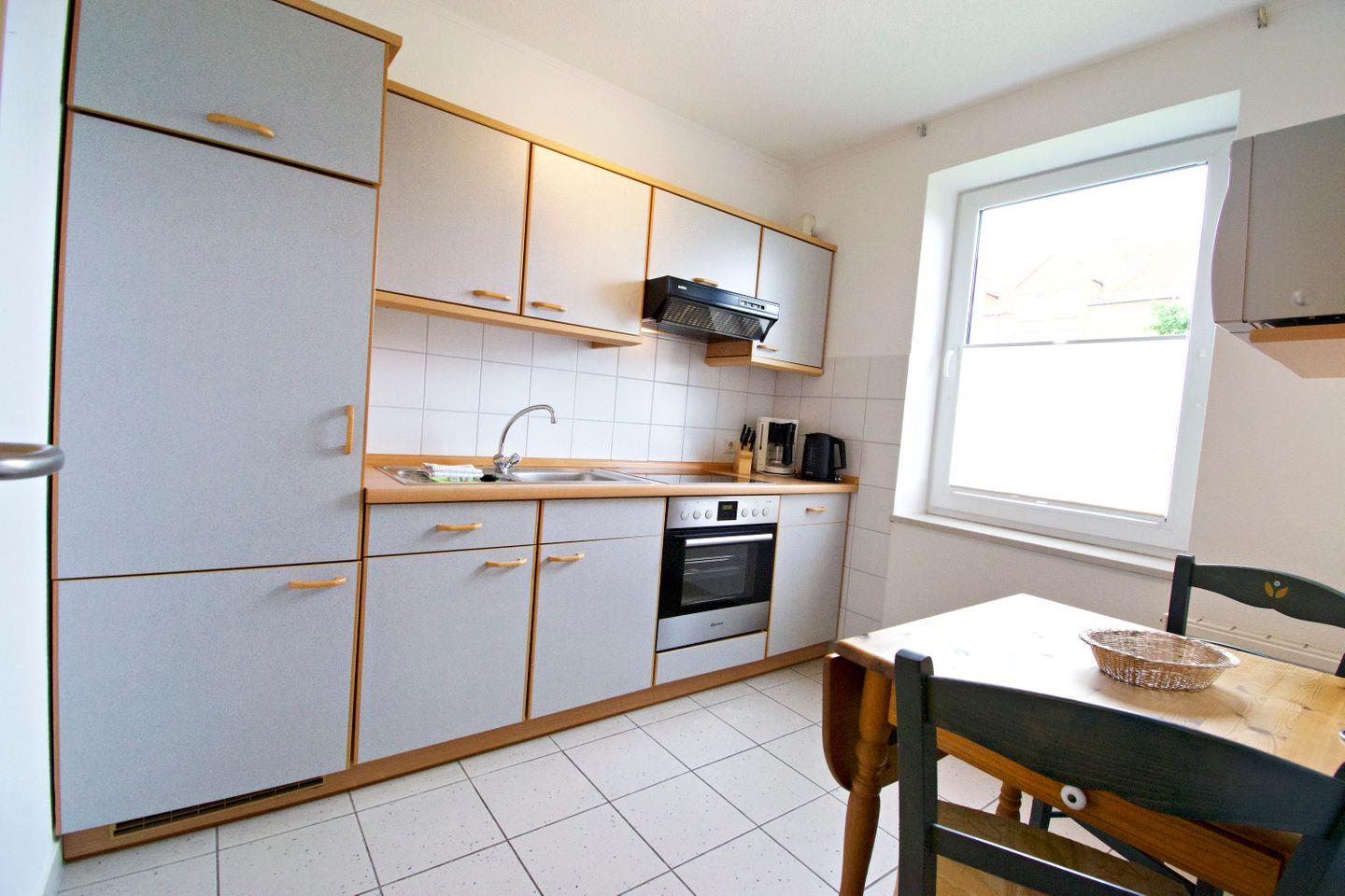Im Eingangsbereich erwartet Sie einen großen Schrank mit Reinigungsmitteln und Utensilien, einen Staubsauger sowie eine Garderobe mit ausreichend Platz für Jacken und Schuhe. Für Ausflüge ins Wattenmeer stehen Ihnen sogar zwei Paar Gummistiefel zur Verfügung. Zusätzliche Ablageflächen sorgen für Ordnung.