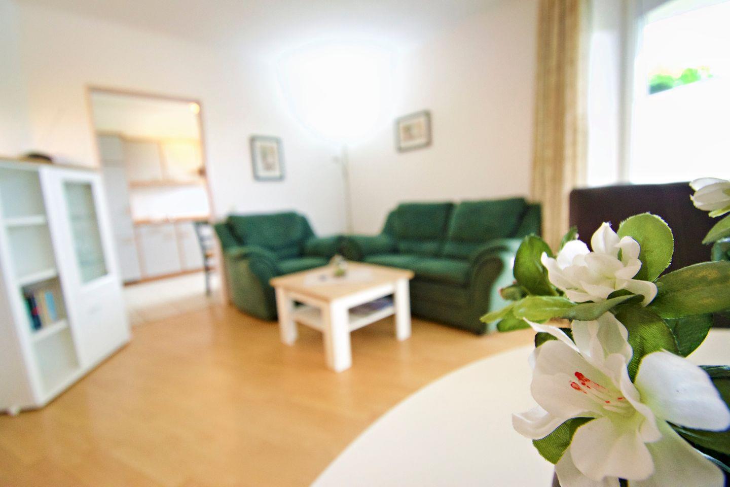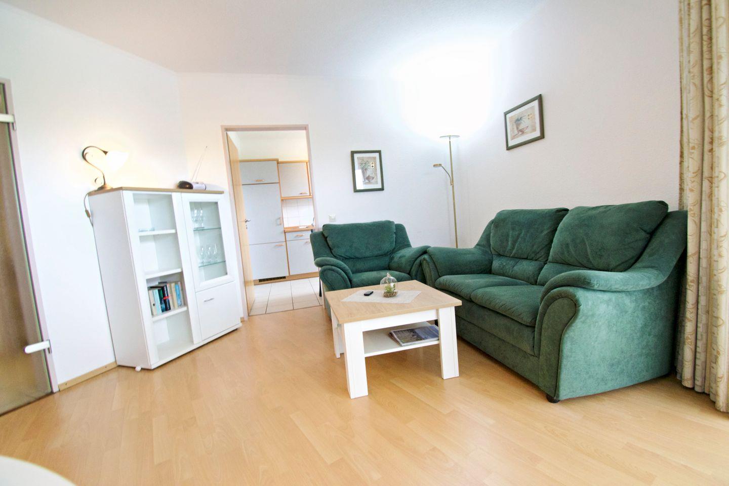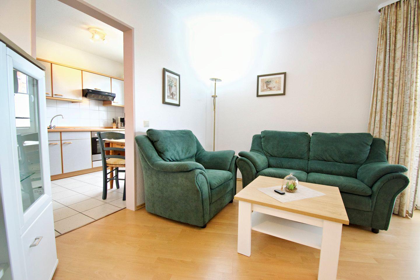 Die gemütliche Ferienwohnung bietet eine Wohn- und Wohlfühlfläche von mindestens 45?m² – ideal für Paare oder die kleine Familie. Der vollständig mit Laminat ausgelegte Wohn- und Essbereich sorgt für eine angenehme Atmosphäre und ist pflegeleicht zugleich. Die Wohnung liegt zentral und dennoch ruhig, direkt hinter dem Deich, sodass Sie sowohl Erholung als auch kurze Wege genießen können.