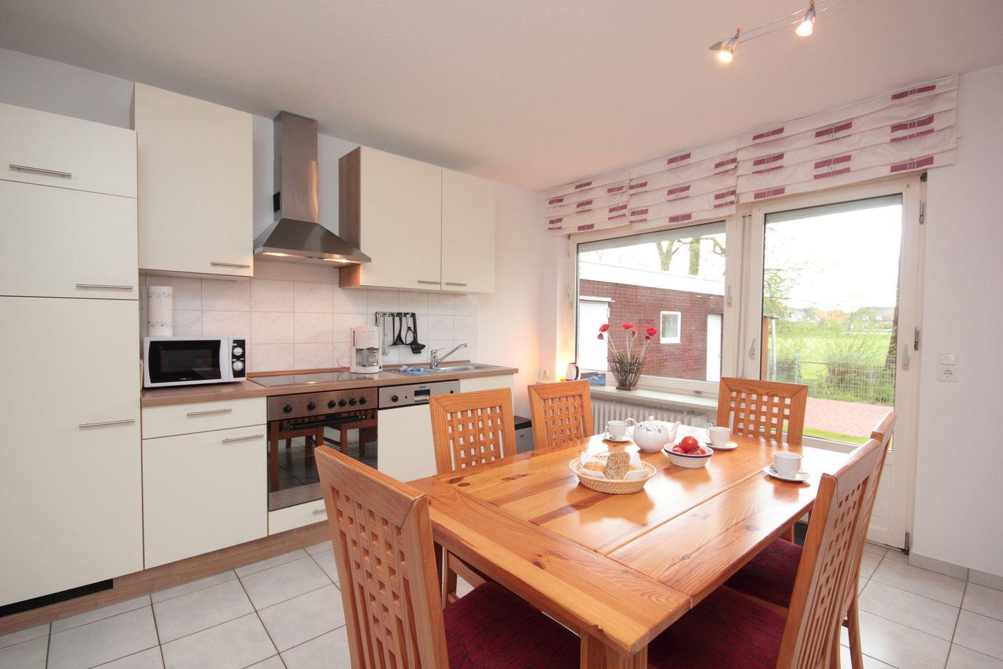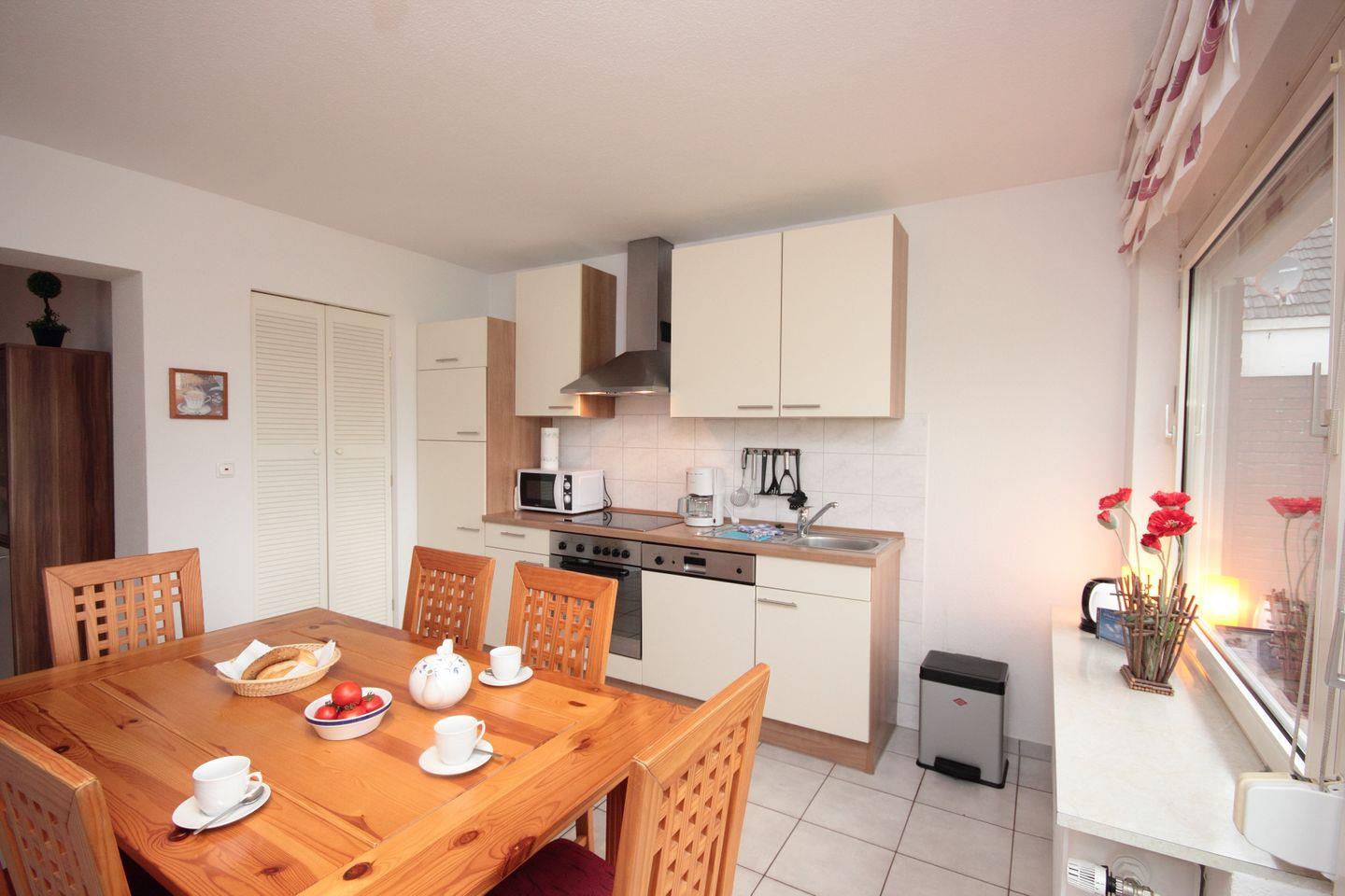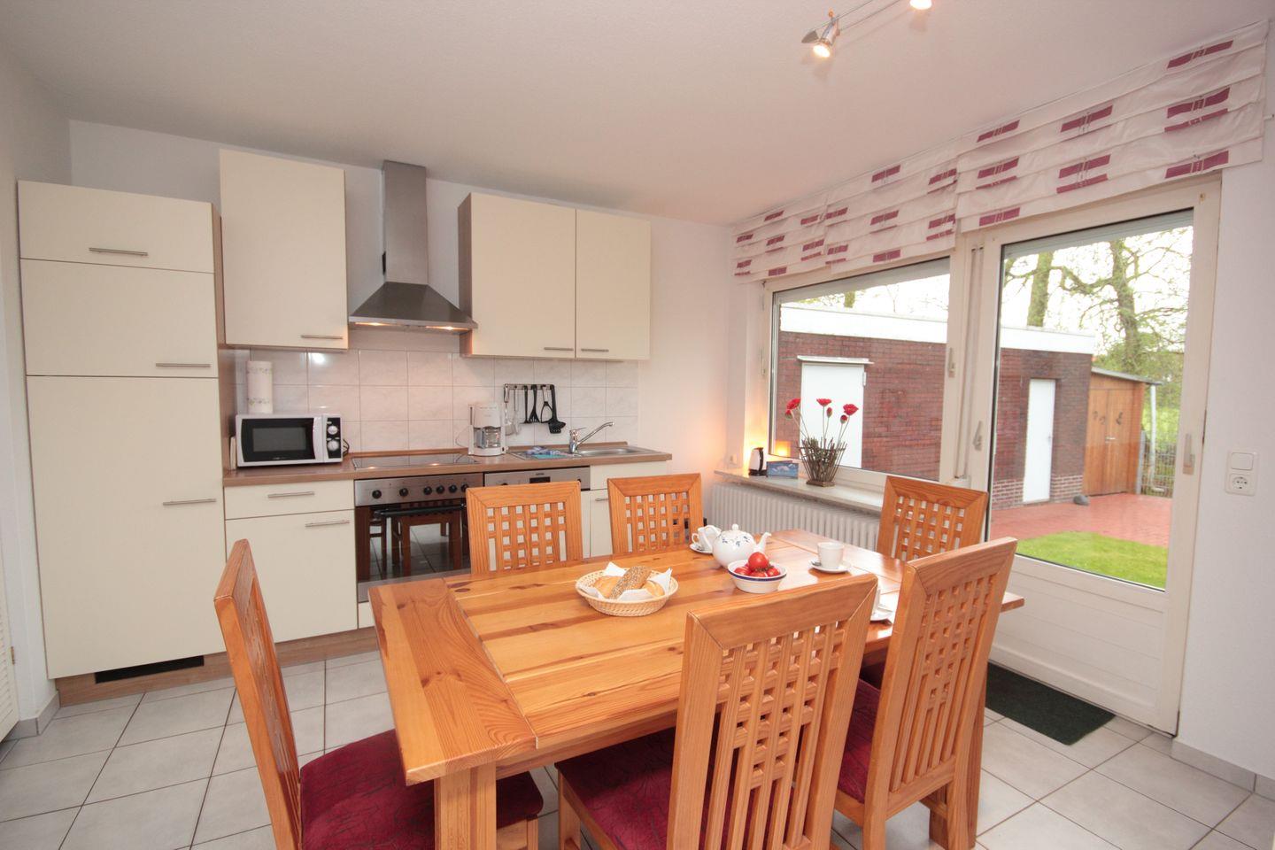Unsere Ferienwohnung Lee liegt im Erdgeschoss und befindet sich in einer ruhigen, aber dennoch zentralen Lage im Herzen von Norddeich. Nur wenige Gehminuten trennen Sie vom Deich und dem Sandstrand. Das Objekt verfügt über einen großen Garten, der sich nach hinten erstreckt und einen entspannenden Rückzugsort bietet. Neben den drei separaten Schlafzimmern gibt es eine separate Küche sowie zwei Badezimmer. Auf der Terrasse mit Markise können Sie die frische Nordseeluft genießen.