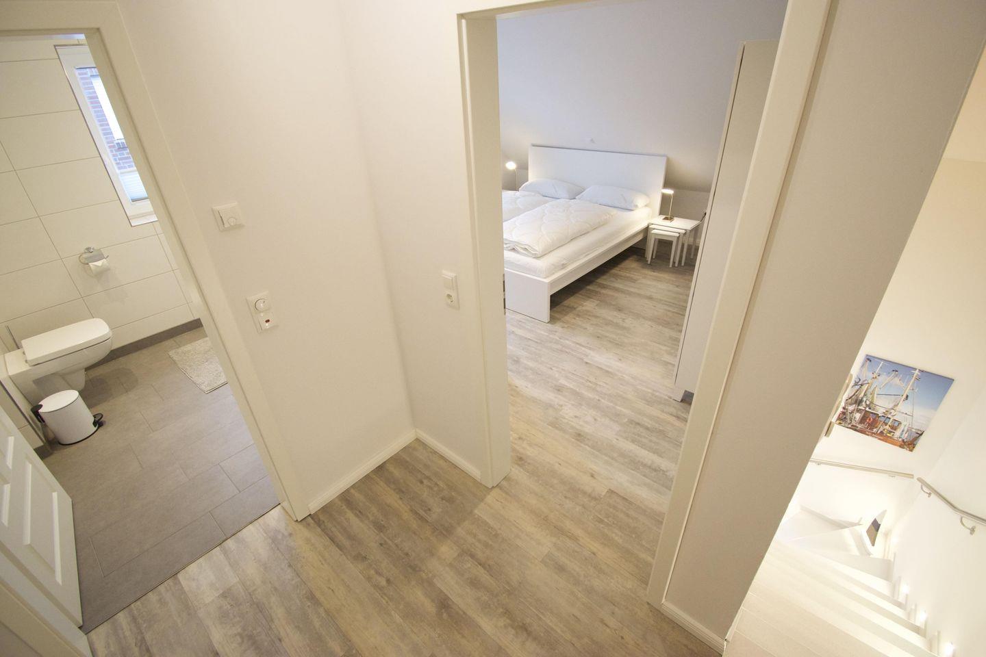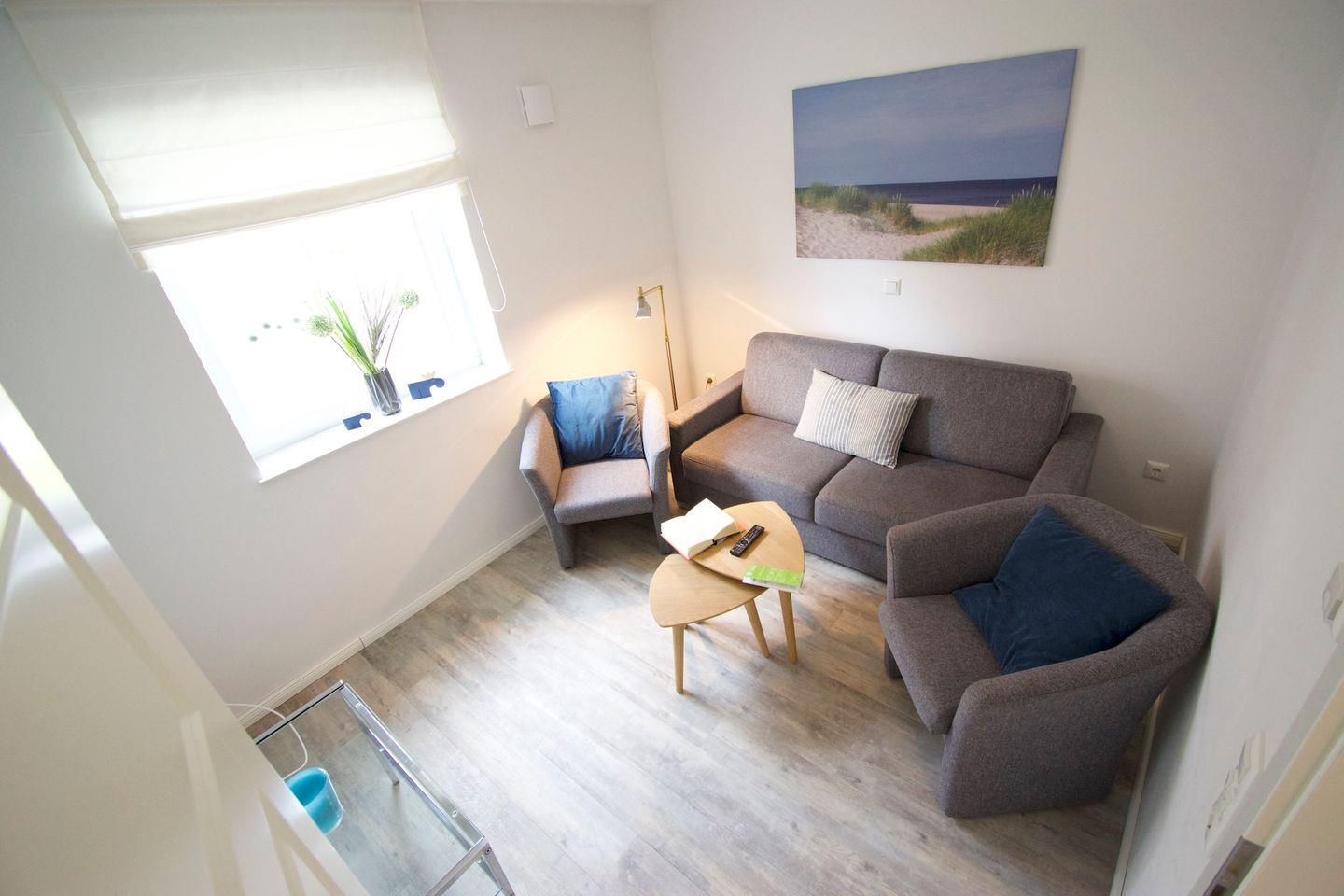 Auf rund 100 m² Wohnfläche, verteilt auf zwei Etagen, finden Familien, Paare oder kleine Gruppen ausreichend Platz.