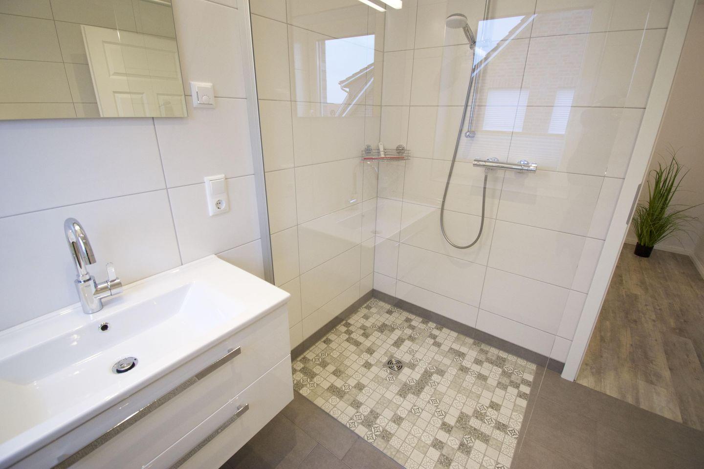 Zwei moderne Badezimmer mit bodengleicher Dusche, Tageslicht und Handtuchheizung bieten hohen Komfort.
