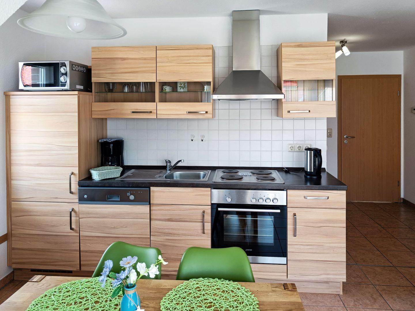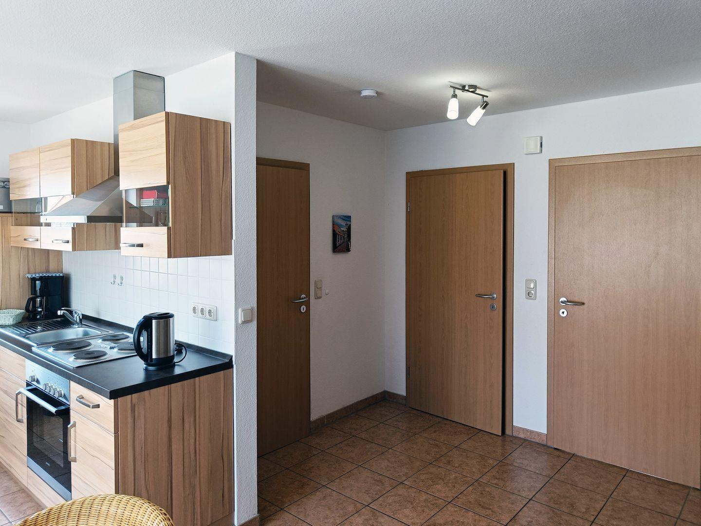 Innen: Ausstattung mit Staubsauger, Besen, Wischer, Bollerwagen, Kinderhochstuhl und Kinderreisebett (120 × 60 cm inkl. 6 cm starker Matratze). Außerdem vorhanden: Sonnenschutz und Auflagen für den Balkon.