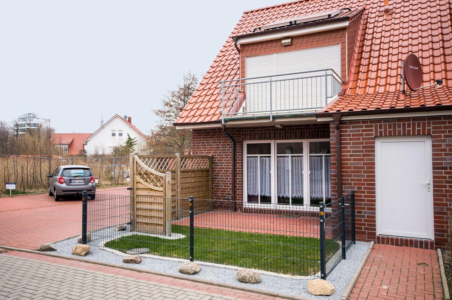 Außen: Platz für Kinderwagen, Fahrräder oder sonstige Gegenstände, sowie Bereich zur Müllentsorgung.