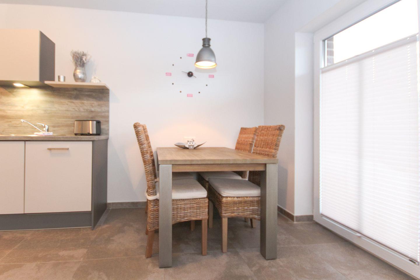 Informationen zu unserem Objekt „Am Kutterhafen“ im Erdgeschoss: Vom Flur aus gelangen Sie zunächst in den Küchen- und Esszimmerbereich, an den das Wohnzimmer direkt in offener Bauweise angrenzt. Machen Sie es sich auf dem Sofa bequem und genießen Sie den direkten Blick zum Deich oder entspannen Sie einfach vor dem Smart-TV. Des Weiteren steht Ihnen ein DVD-Player zur Verfügung.