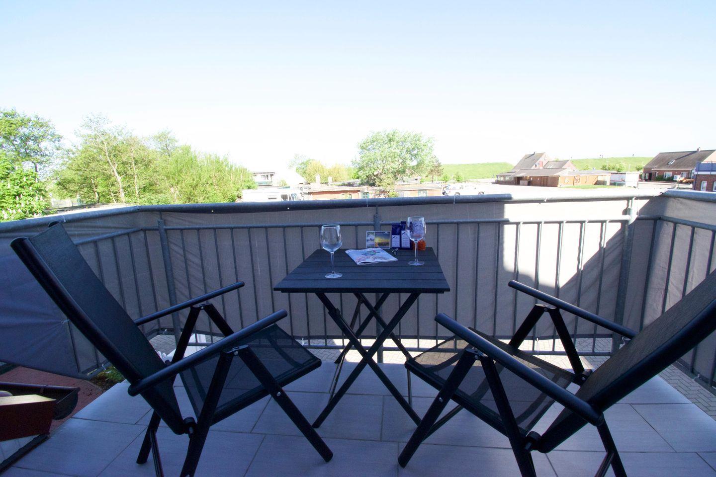 4 Pers., 60 qm, Obergeschoss, Deichblick vom Balkon aus, 2 Schlafzimmer