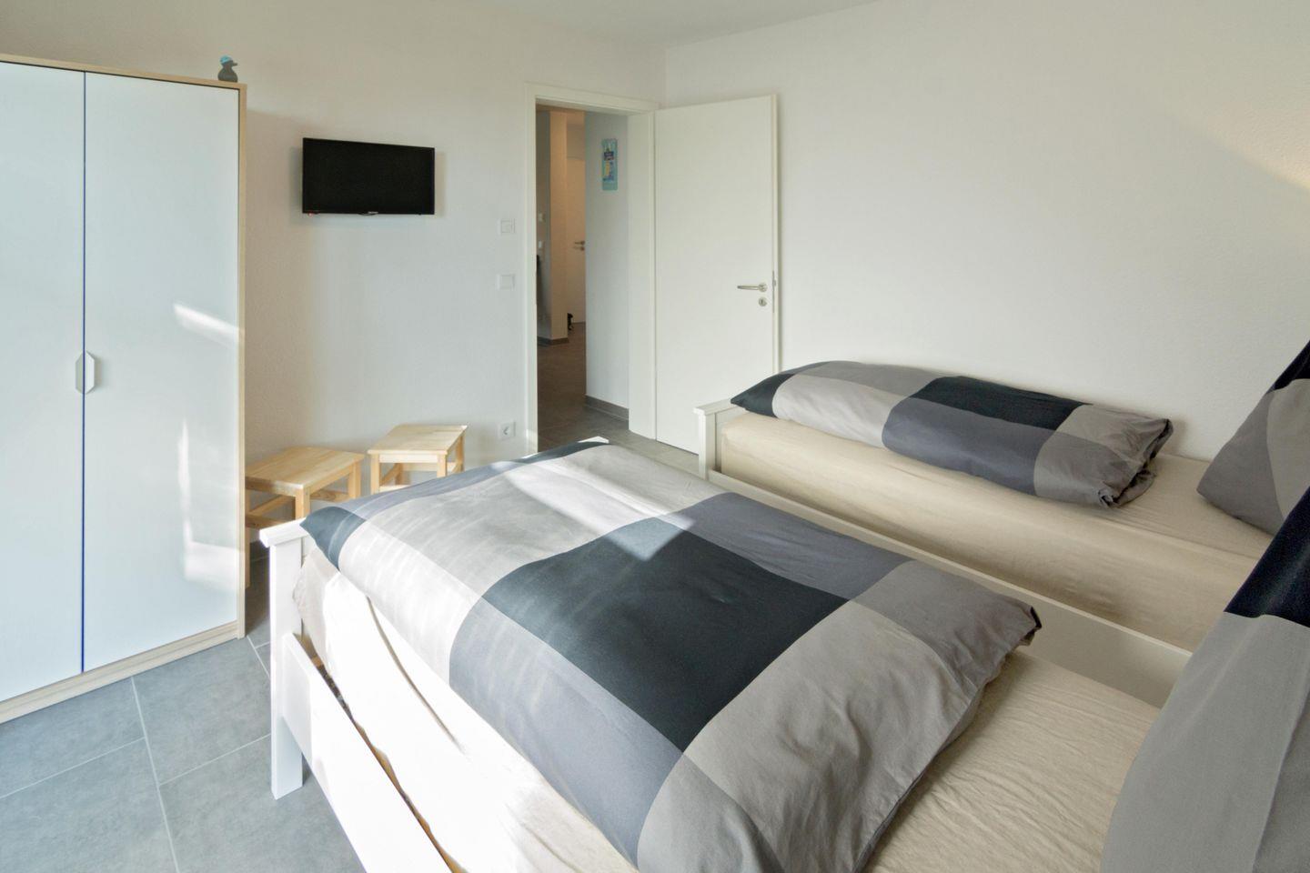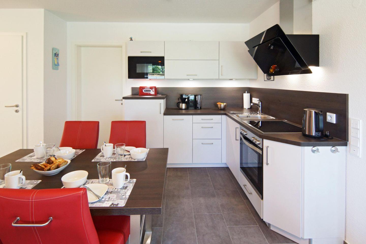 Die Erdgeschosswohnung mit separatem Eingang verfügt über einen Wohn- und Essbereich mit voll ausgestatteter Küche, zwei Schlafzimmer, Gleich drei Fernseher (Kabel-TV, HD, 50 Zoll (ca. 127 Zentimeter)), CD-Player und Blu-Ray-DVD sowie Highspeed-Internet über Kabel bieten Unterhaltung vom Feinsten. Für warme Füße sorgt in allen Räumen die Fußbodenheizung, die teils bodentiefen Fenster sind mit elektrischen Rollläden ausgestattet. Zur Wohnung gehört eine Terrasse und ein kleiner Garten. Die Wohnung ist durch ihre Ebenerdigkeit und den extra breiten Parkplatz (5 × 2,7 m) behindertenfreundlich. Für die Kleinsten gibt es einen Spielplatz (Gemeinschaft).