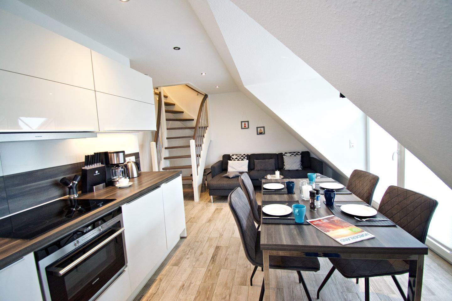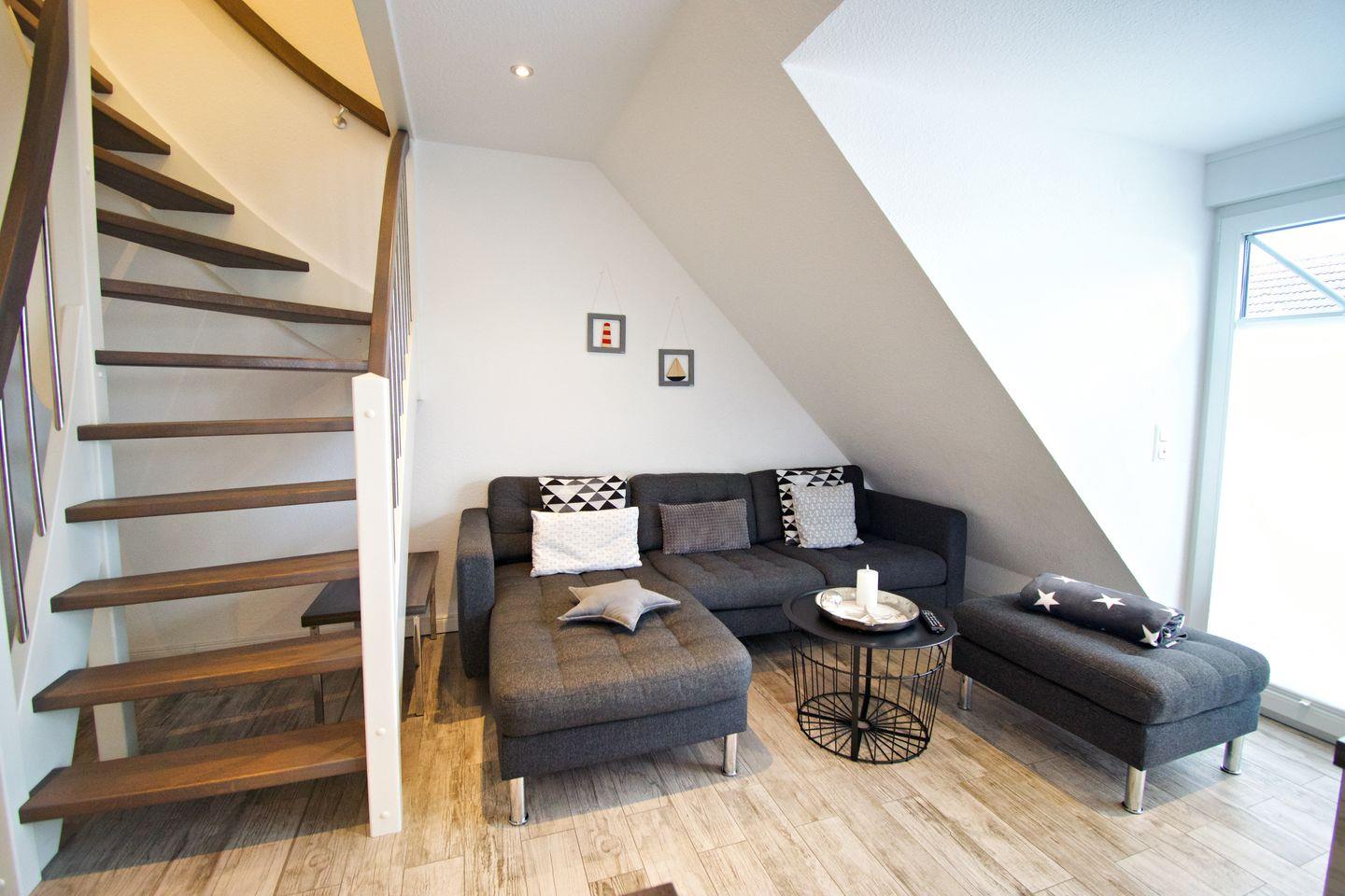 Unsere Ferienwohnung Riff II im Obergeschoss bietet Ihnen, auf ca. 60 m² in einer hervorragenden, zentralen und einer Sackgassenlage in Norddeich, alles, was Sie für eine gute Ferienwohnung halten. Sie sind sich nicht sicher? Entscheiden Sie selbst.