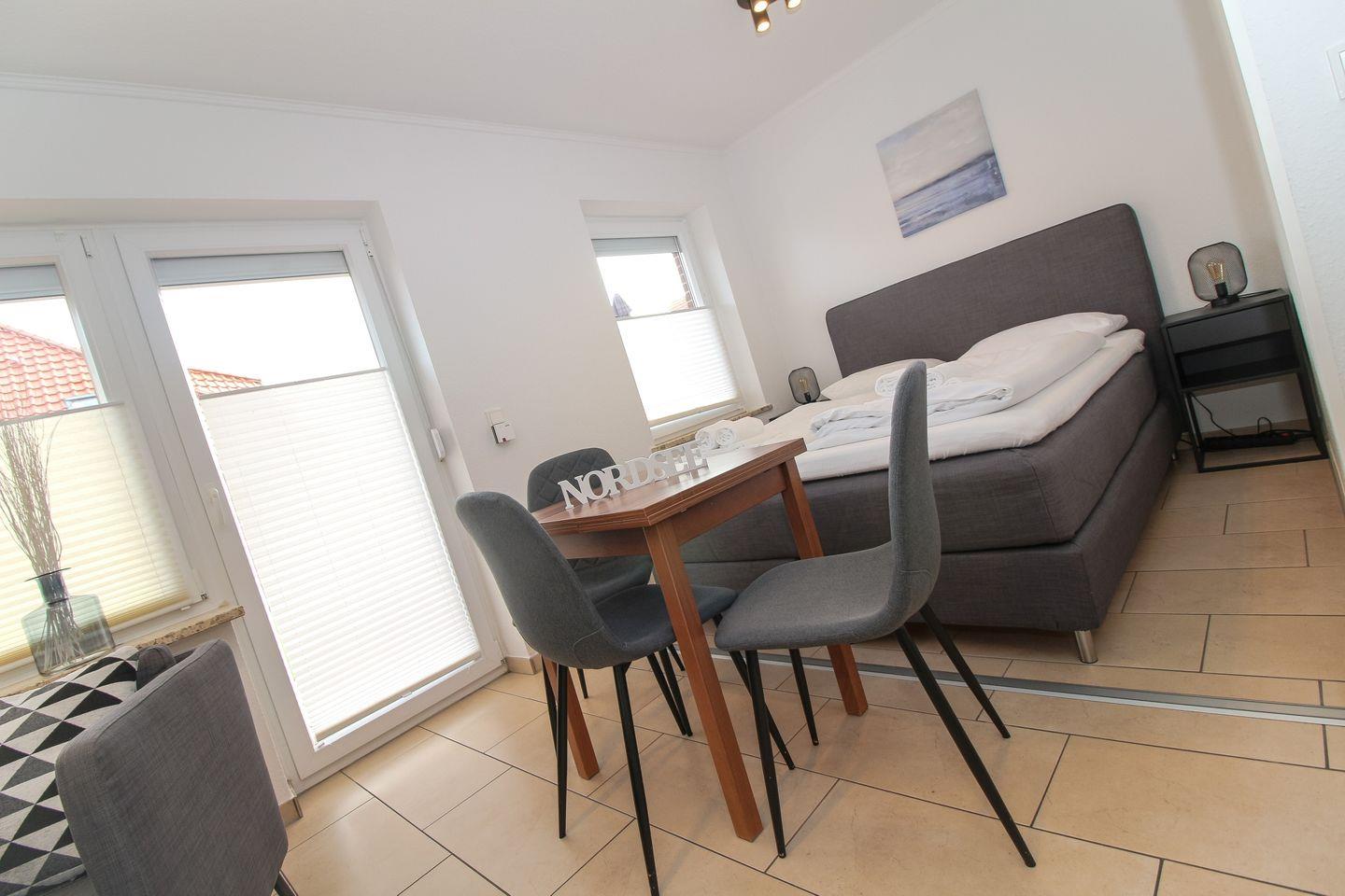 Die Ferienwohnung Riff IV bietet Platz für bis zu drei Personen. Genießen Sie die ruhige Lage. Nur wenige Meter vom Nordseestrand entfernt erwartet Sie ein liebevoll eingerichtetes Ferienapartment.