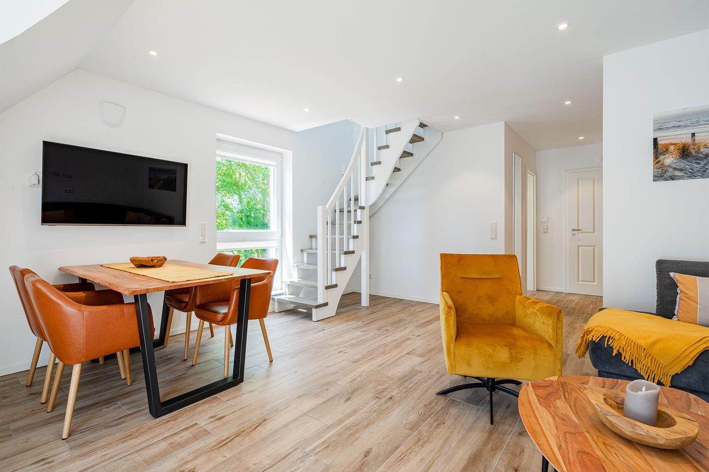 Diese hochwertig ausgestattete Maisonette-Ferienwohnung mit 57 m² Wohnfläche befindet sich in einem neu erbauten Haus, nur wenige Schritte vom Deich und der Strandpromenade entfernt – perfekt für einen entspannten Urlaub an der Nordsee. Die Wohnung bietet Platz für bis zu 4 Personen und ein Kleinkind (unter 2 Jahren) und ist somit ideal für Paare, Familien oder kleine Gruppen. Die durchdachte Raumaufteilung, die stilvolle Einrichtung und die hochwertige Ausstattung sorgen für Komfort auf zwei Etagen.