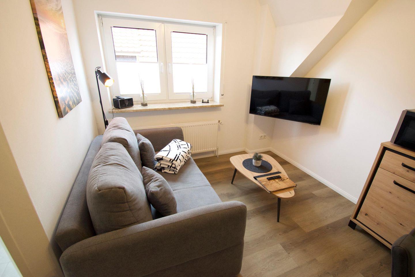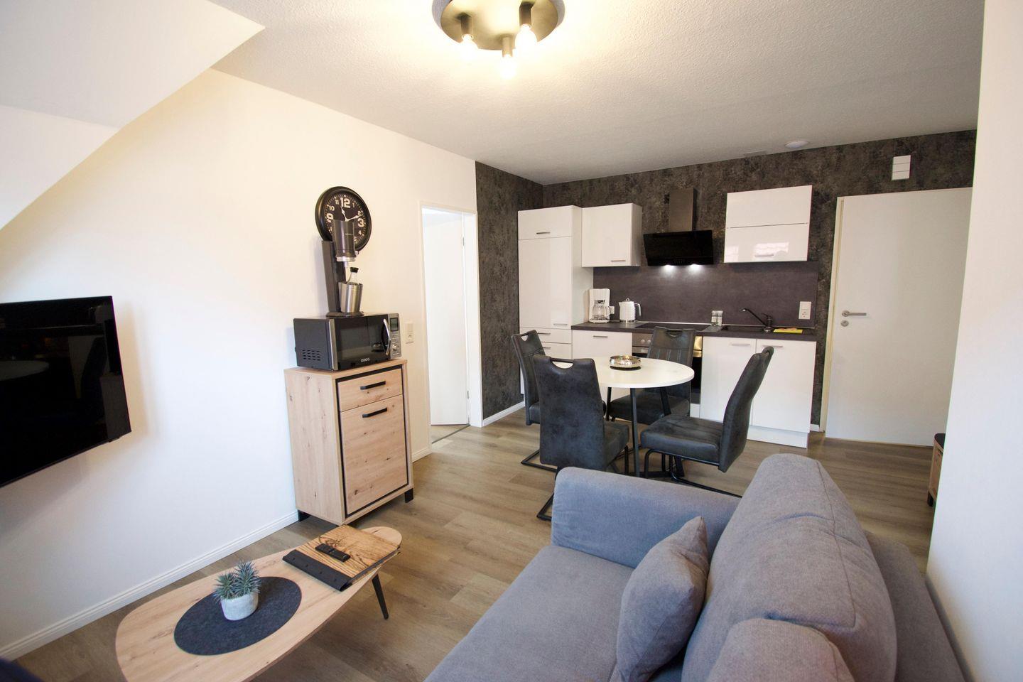 Diese Wohnung ist hochwertig ausgestattet und liegt ruhig und dennoch zentral im beliebten Küstenort Norddeich – Einkaufsmöglichkeiten, Restaurants, der Strand und die Fähre zu den Inseln sind bequem zu Fuß erreichbar. Ein eigener Parkplatz direkt am Haus, sowie eine gemeinschaftliche Garage mit Abstellmöglichkeiten für Fahrräder gehören ebenfalls dazu. In dieser finden Sie auch Bollerwagen, Gartenmöbel, Sonnenschirme und Grills die im Garten genutzt werden können.