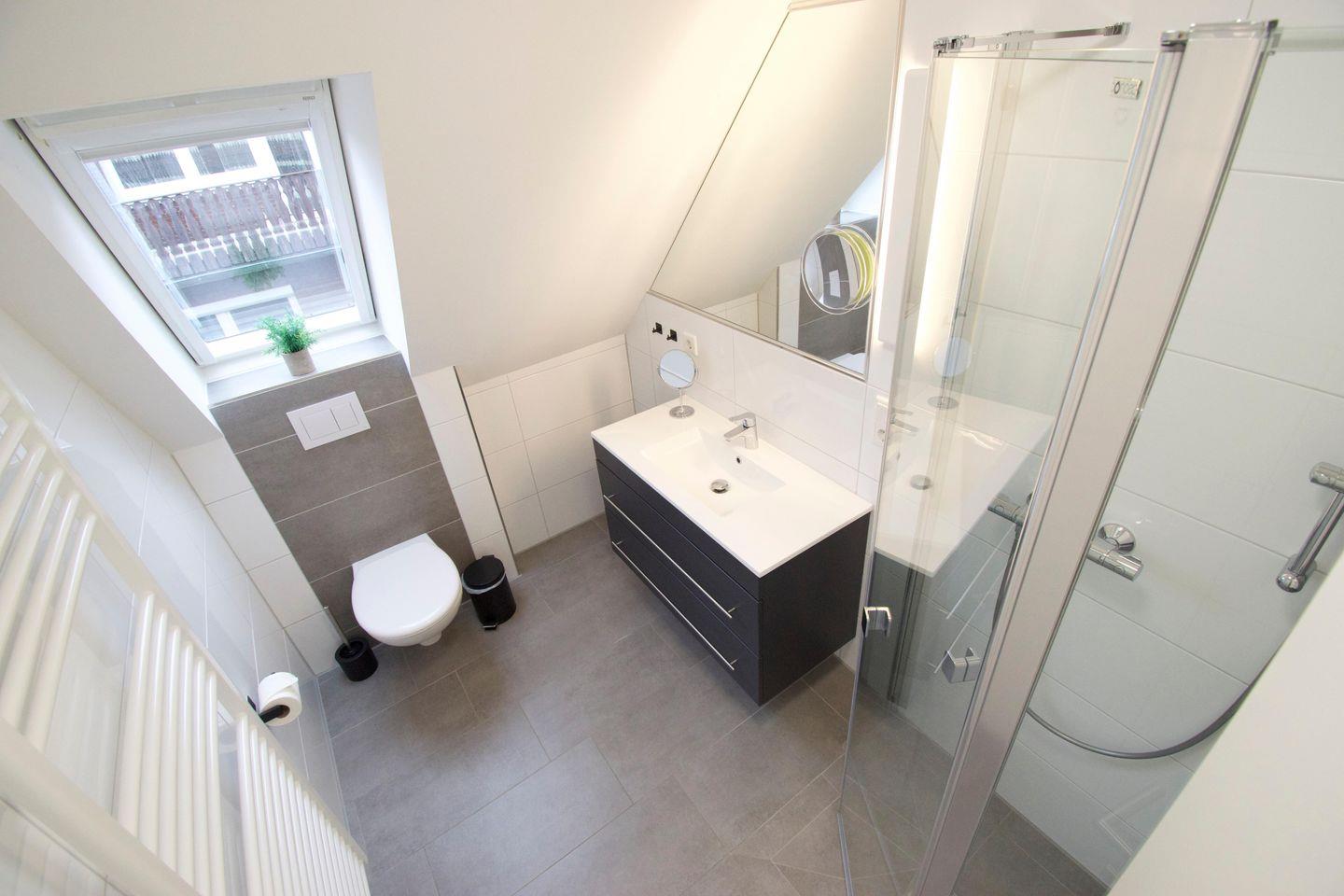 Das moderne Badezimmer mit Dusche, der eigene Parkplatz am Haus, sowie eine gemeinschaftliche Garage mit Grills, Bollerwagen, Fahrradabstellmöglichkeit und Gartenmöbeln mit Sonnenschirmen bieten Ihnen alles, was Sie für einen entspannten Urlaub benötigen.