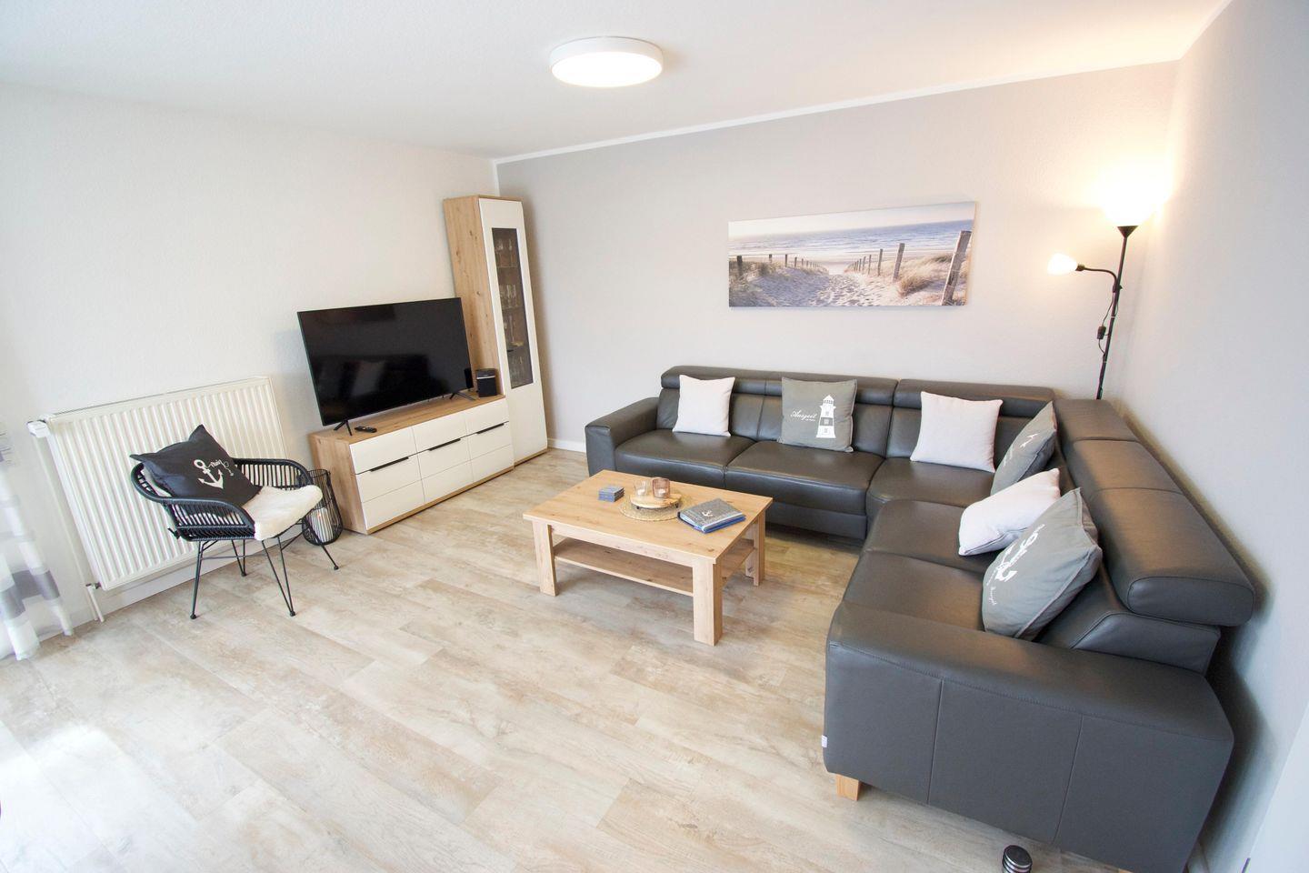 Die großzügige Doppelhaushälfte bietet auf ca. 110 m² Platz für sechs Personen und bis zu zwei Kleinkindern. Auf der Terrasse können Sie nach Herzenslust grillen und Sonnenbaden. Zur Entspannung können Sie den eigenen Strandkorb nutzen. Direkt vor dem Haus befindet sich ein Pkw-Stellplatz mit 22KW Wallbox, sodass auch E-Autos geladen werden können. WLAN ist im gesamten Haus kostenlos verfügbar. Durch den nur 100 m entfernten Spielplatz und die sehr kindgerechte Ausstattung ist das Haus perfekt geeignet für einen Urlaub mit der ganzen Familie.