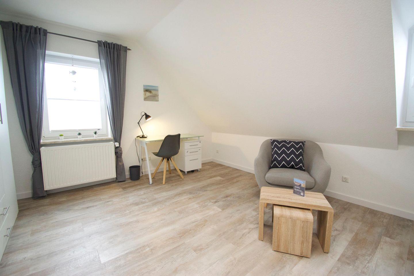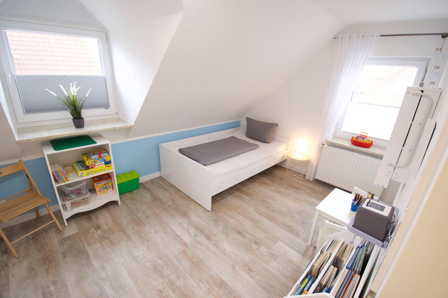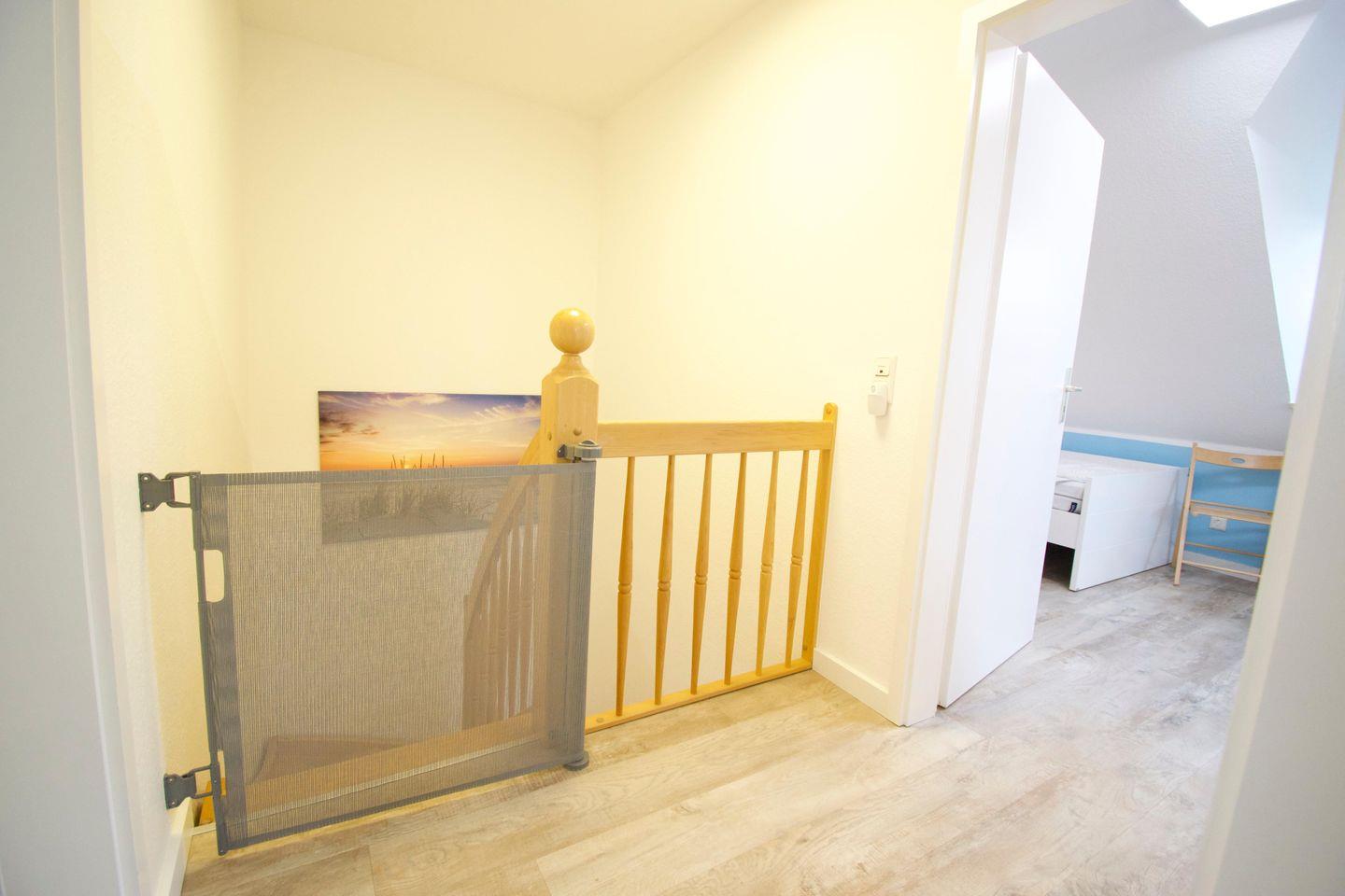 Im gesamten Haus sind Rollläden vorhanden, lediglich in den beiden Schlafzimmern im Obergeschoss sind in den Gaubenfenstern Verdunkelungsplissees angebracht. Des Weiteren bieten wir Ihnen kostenlos zwei Kinderhochstühle sowie zwei Babyreisebetten inklusive Matratze an.