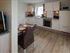 Die Küche mit Essplatz ist zum Wohnraum hin offen gestaltet, optisch jedoch von diesem separiert. Die neue, große Einbauküche bietet Ihnen reichlich Komfort und sorgt dafür, dass Sie hier problemlos und ganz wie Zuhause kochen können. Der Herd der Küchenzeile ist mit einer Abzugshaube versehen. Backofen, Mikrowelle, Kühlschrank und Spülmaschine stehen Ihnen ebenfalls zur Verfügung. Weitere nützliche Küchengeräte wie zum Beispiel eine Kaffeemaschine, aber auch Toaster und Mixer runden die Ausstattung der Küche ab.