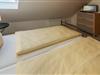 Über eine Holztreppe erreichen Sie das obere Stockwerk der Wohnung. Hier befindet sich das zweite Schlafzimmer. Auch dieser Raum wurde mit einem Doppelbett (160x200cm) ausgestattet. Zusätzlich steht hier ein Babybett zur Verfügung.