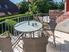 Direkt vom Wohnraum gelangen Sie auf den schönen Balkon der Wohnung. Dank der Ausrichtung nach Südosten können Sie hier bereits am Morgen die ersten Sonnenstrahlen bei einem Frühstück an der frischen Luft genießen. Selbstverständlich wurde der Freisitz mit Tisch und Stühlen ansprechend möbliert, so dass Sie hier komfortabel verweilen können. Genießen Sie die frische Luft und den Ausblick auf den Frisia-Teich.