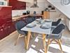 Herzstück des Appartements ist der großzügig und offen angelegte Wohn- und Essbereich mit integrierter Küchenziele.