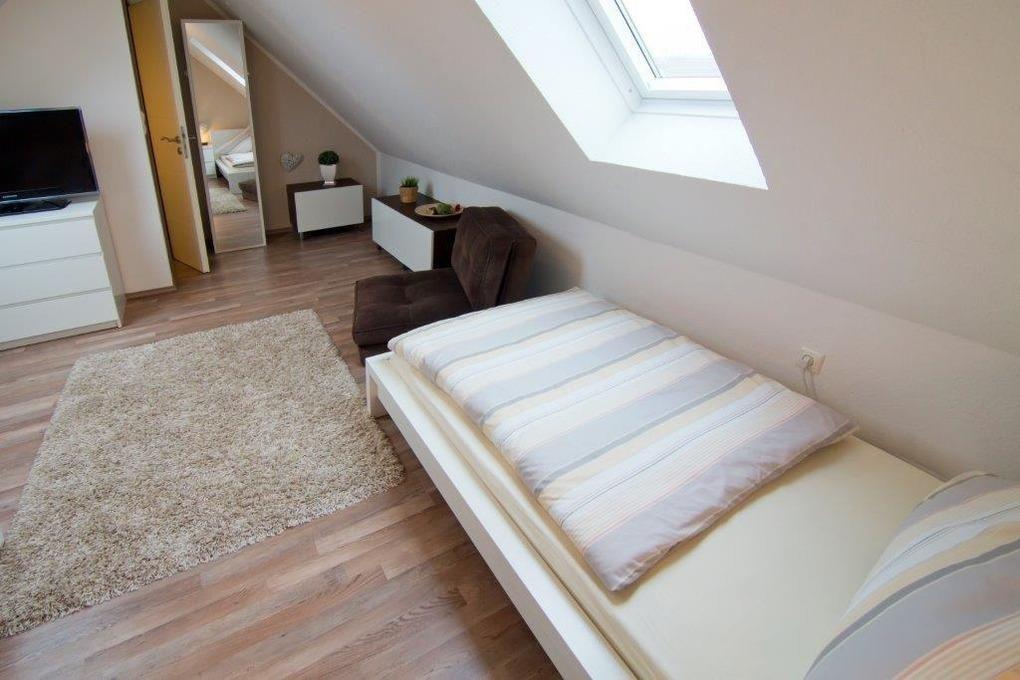 Die gesamte Wohnung ( im Dachgeschoss mit Verdunklung Rollo ) lässt sich über Jalousien verdunkeln. Haustiere sind nicht erlaubt.